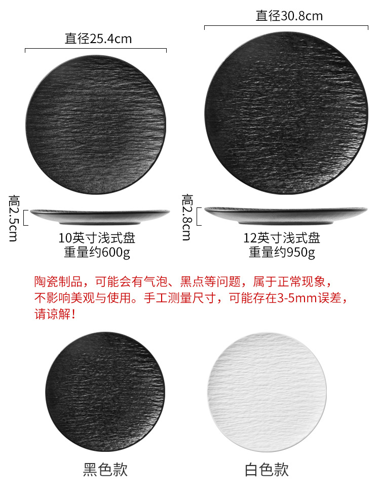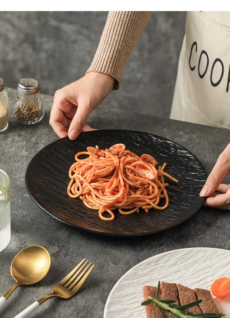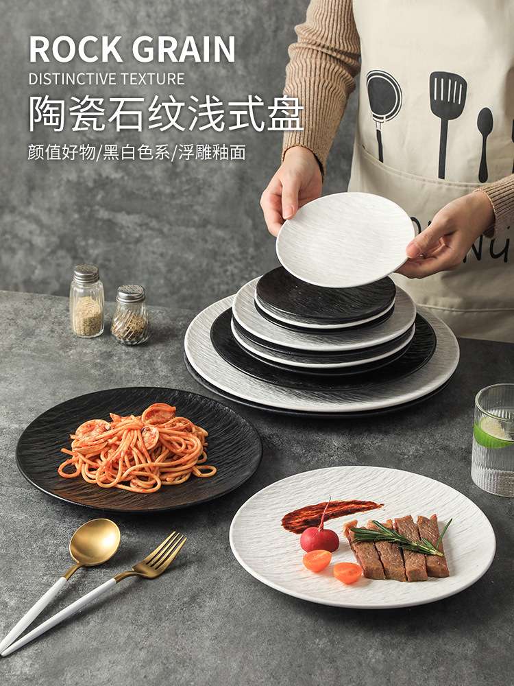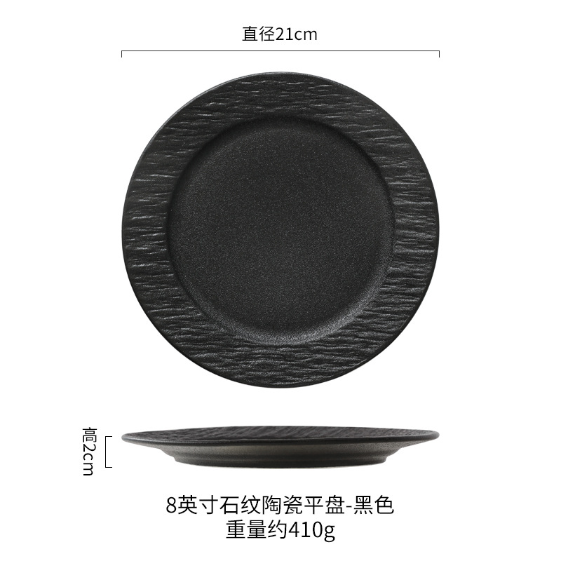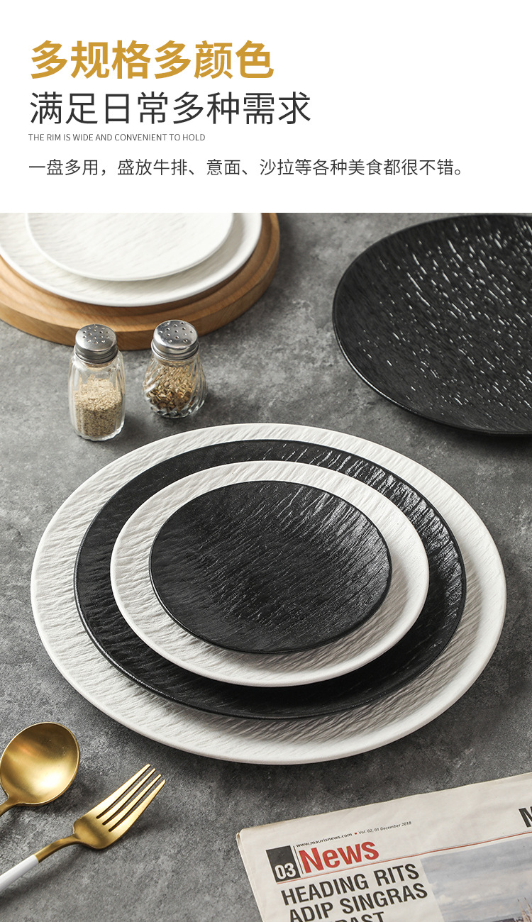 블랙 록 패턴 스테이크 플레이트 얕은 플레이트 스타 호텔 8 인치 살라 플레이트 웨스턴 플레이트 플랫 플레이트 뼈 플레이트 케이크 플레이트스토어 가기