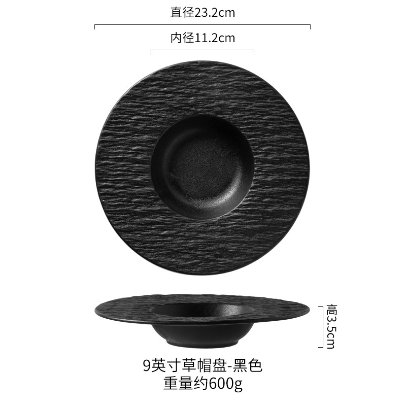 • 9inch 스톤 패턴 밀짚모자 접시 [언더글레이즈 컬러 블랙]