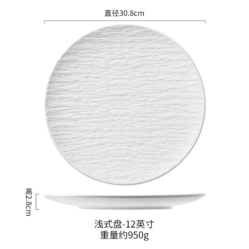 • 12inch 스톤 패턴 얕은 접시 [하유색 흰색]