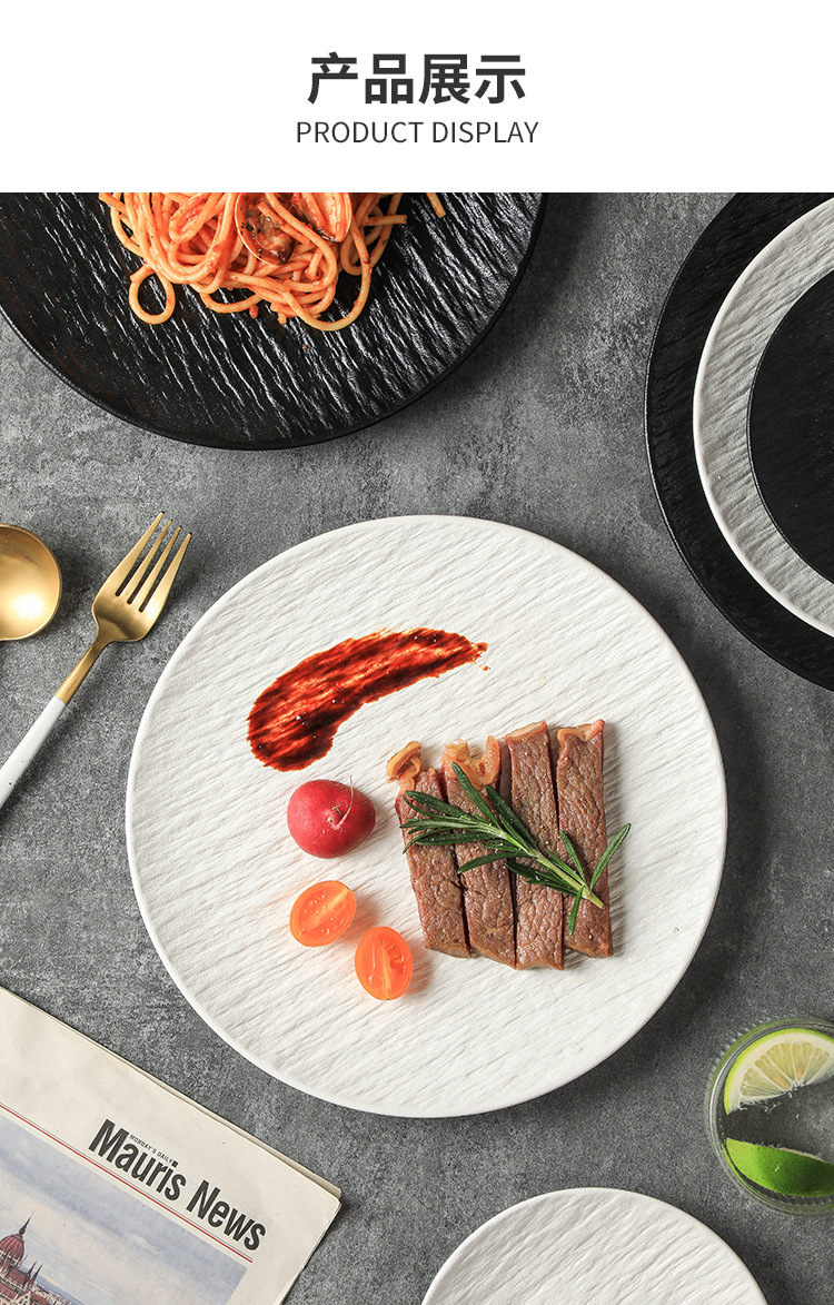 블랙 록 패턴 스테이크 플레이트 얕은 플레이트 스타 호텔 8 인치 살라 플레이트 웨스턴 플레이트 플랫 플레이트 뼈 플레이트 케이크 플레이트