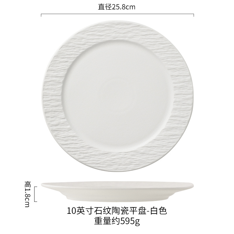 • 10inch 스톤 패턴 얕은 접시 [하유색 흰색]