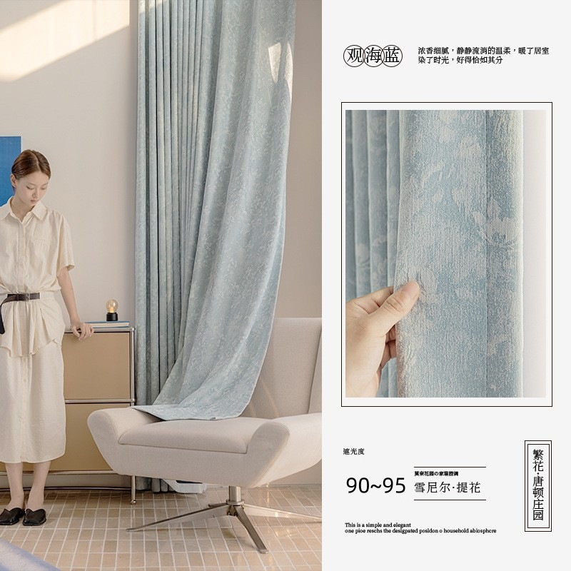 다운튼 앵서리 프렌치 레트로 하이탑 커튼 자카드 셔닐 침실 및 거실 중세 스타일 미국식 암막 커튼
