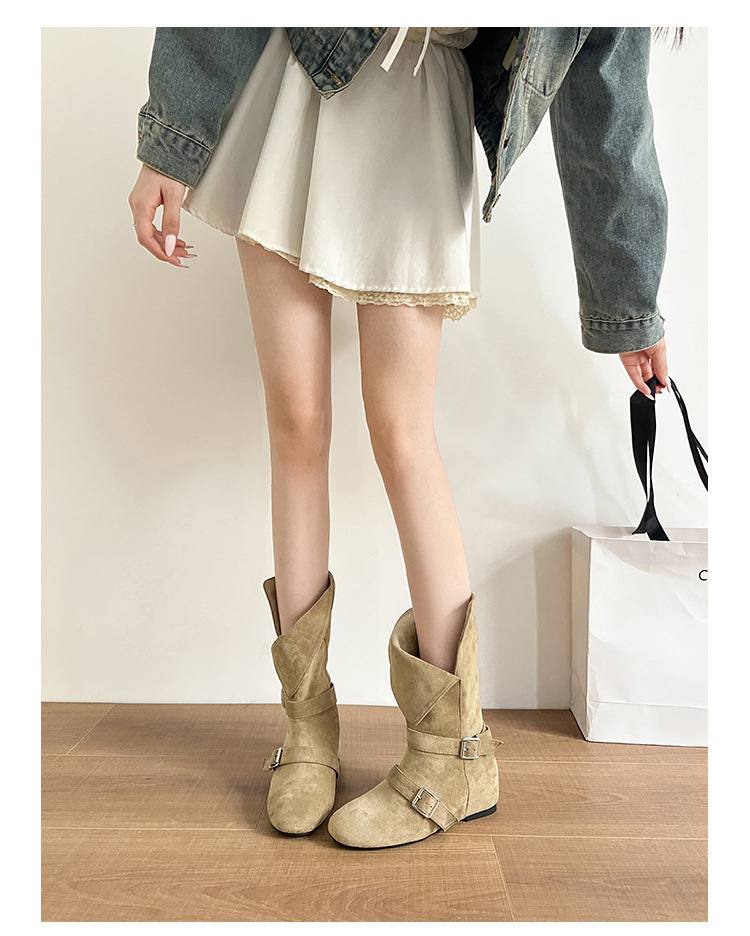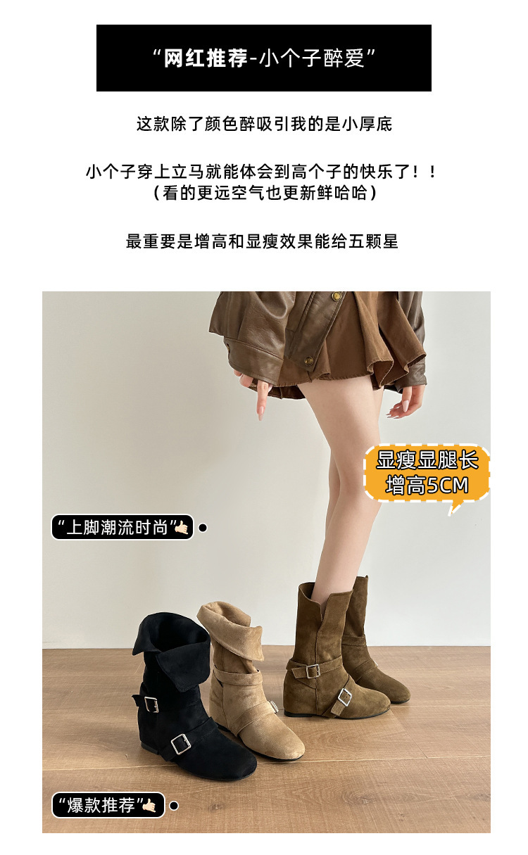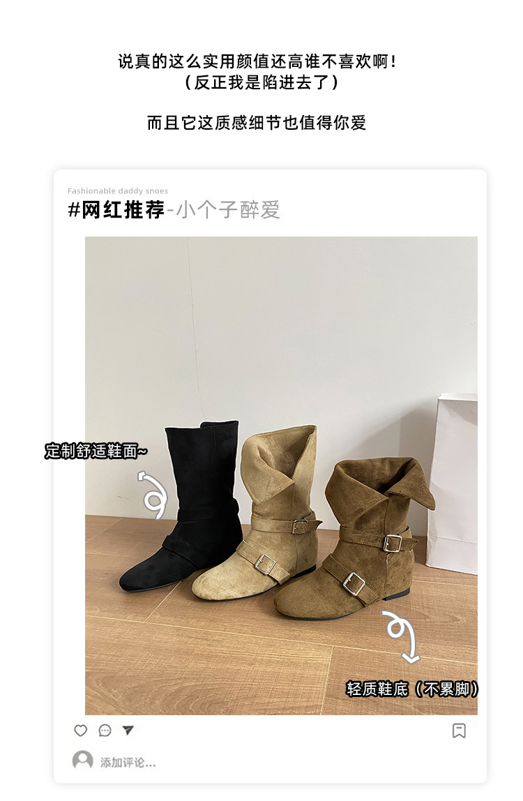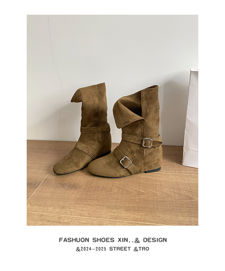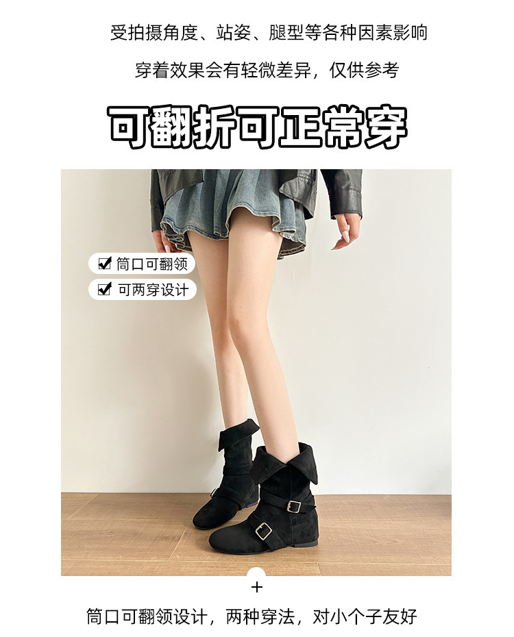 한국 스웨이드 레트로 작은 스퀘어 투웨어 접이식 두꺼운 벨트 버클 쇼트 부츠 여성 가을 겨울 마틴 부츠 짧은 부츠스토어 가기