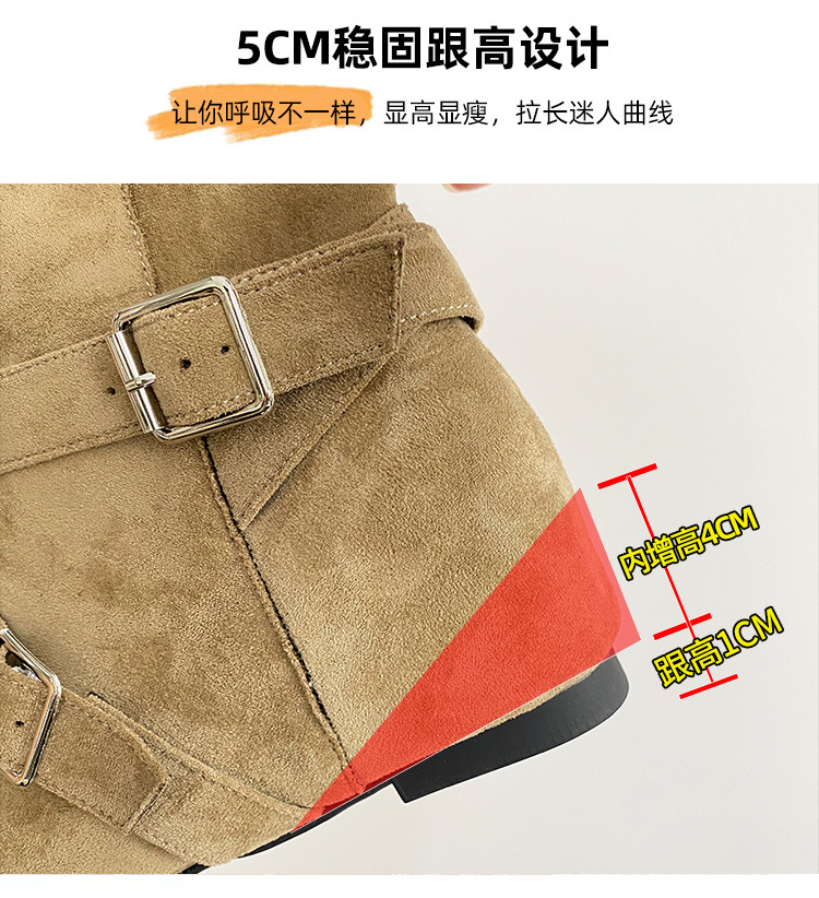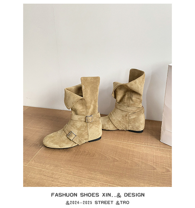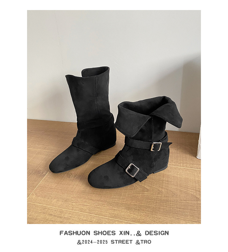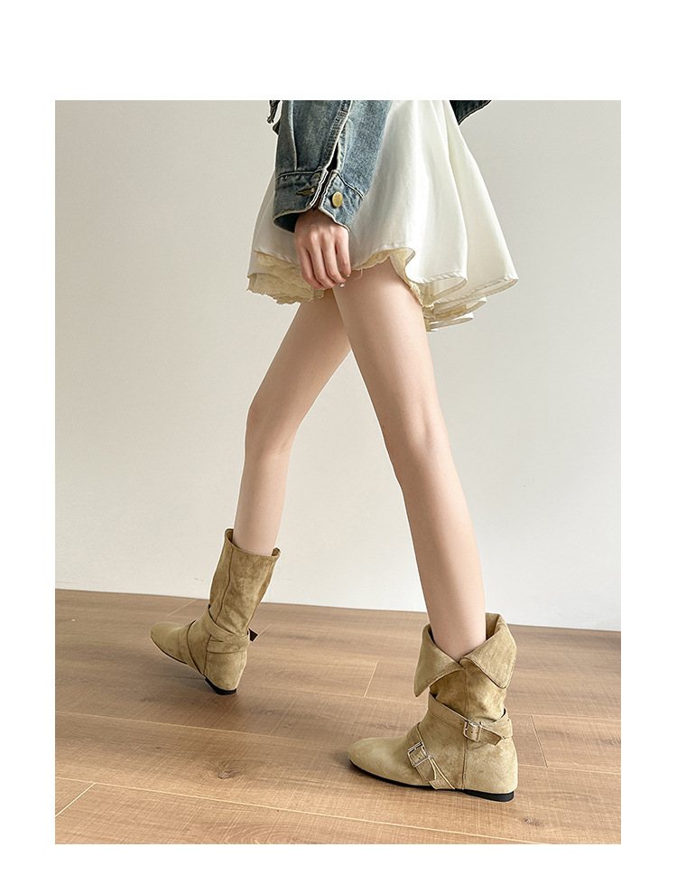 한국 스웨이드 레트로 작은 스퀘어 투웨어 접이식 두꺼운 벨트 버클 쇼트 부츠 여성 가을 겨울 마틴 부츠 짧은 부츠