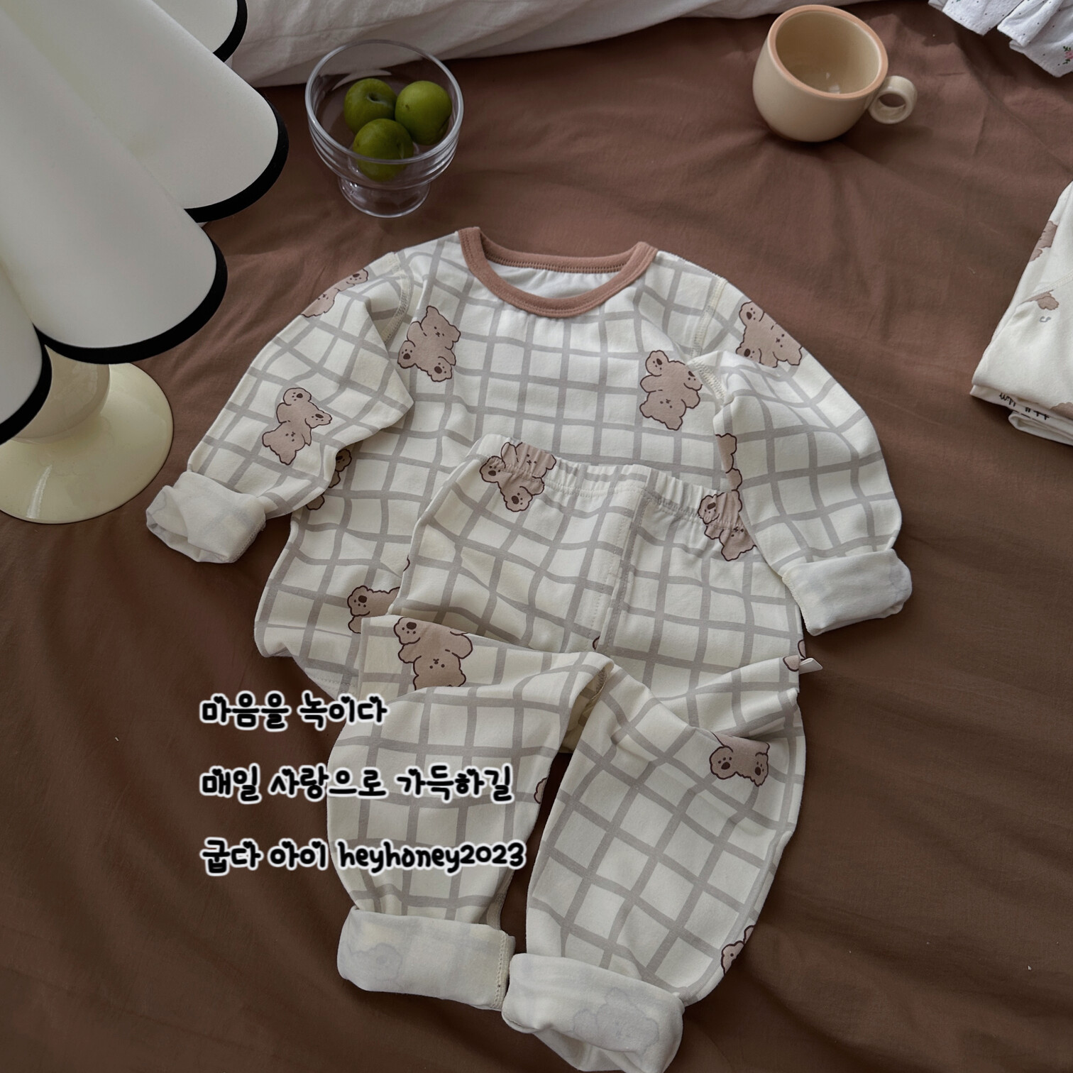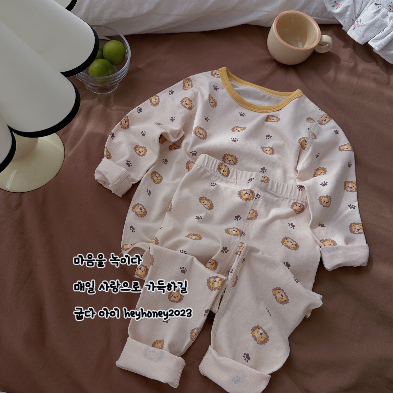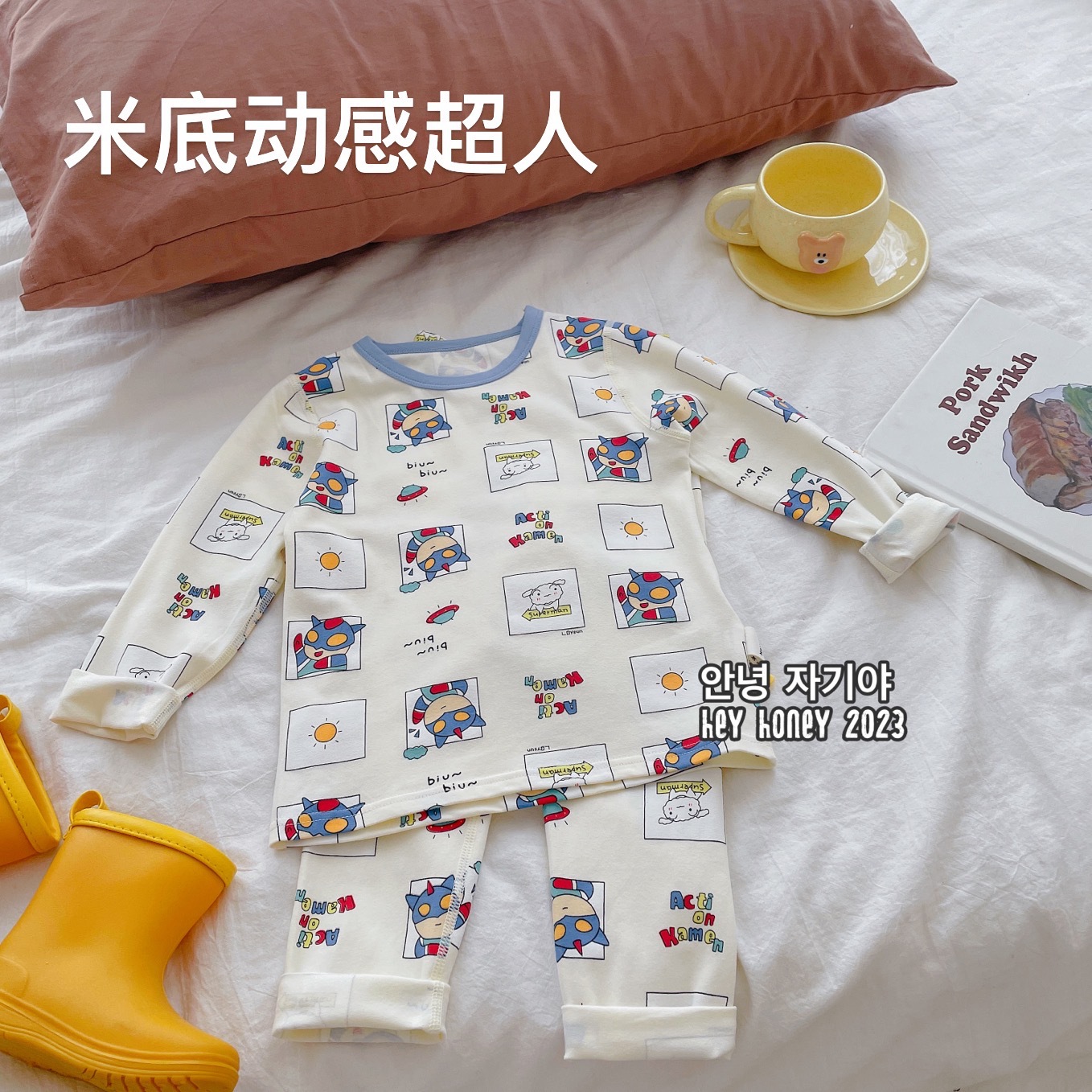 재고 사이즈 롤 헤이 연인 소년 가을과 겨울 가을 속옷 한국 프린트 홈 의류 파자마 투피스 세트스토어 가기