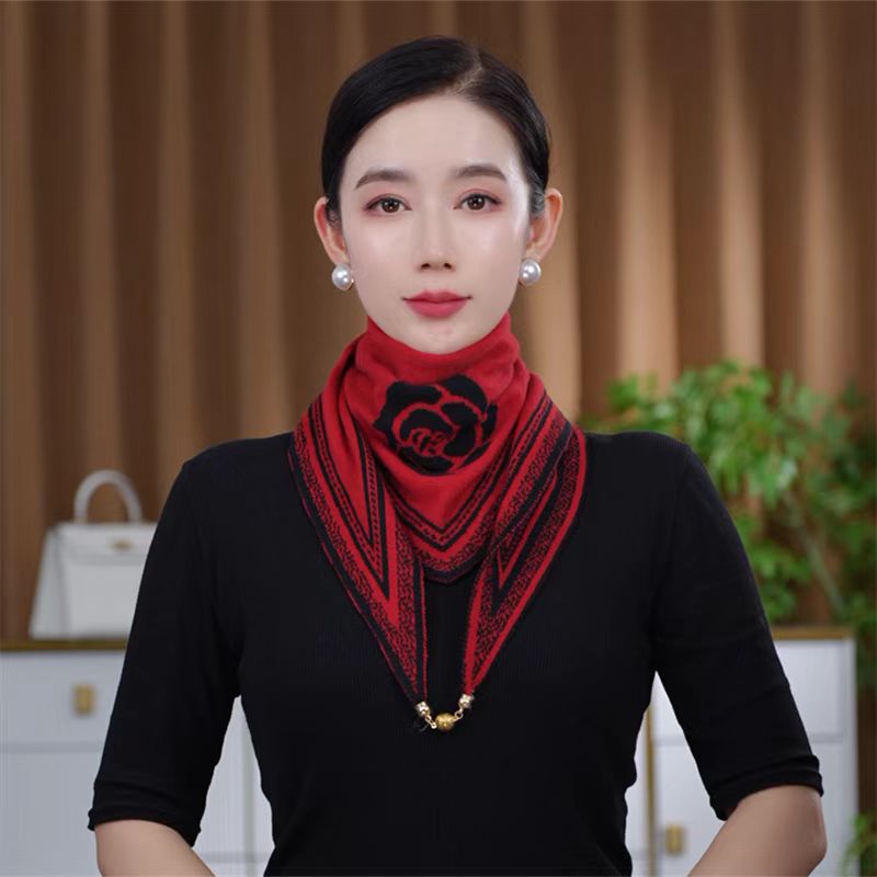 가을과 겨울 패션 우아한 한국 스타일 올매치 니트 동백 색상 매칭 마그네틱 버튼 삼각형 스카프 게으른 목 보호 스카프스토어 가기