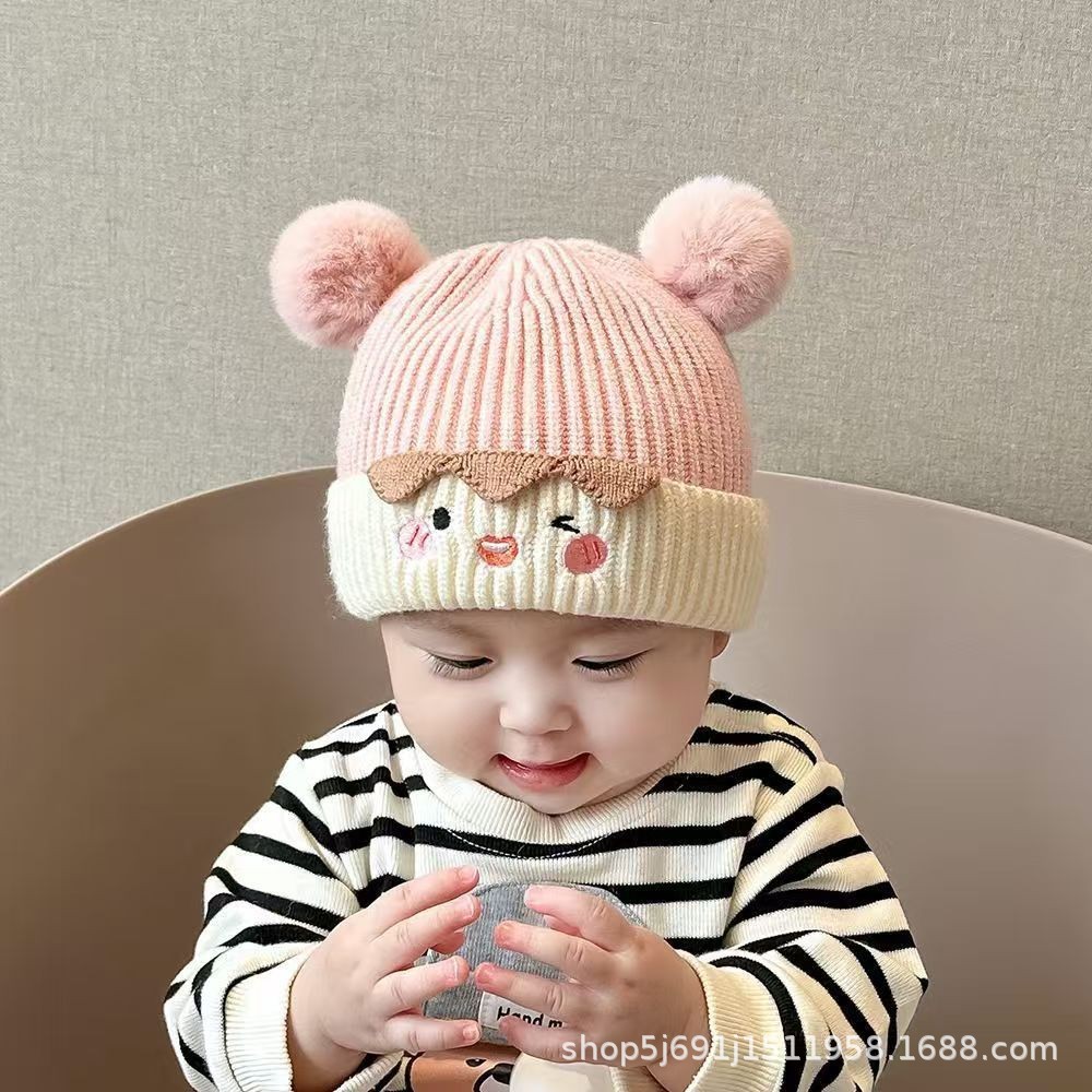 아기 모자 겨울 귀여운 작은 달 된 소년과 소녀 울 모자 가을과 겨울 아기 울 모자는 두꺼운 니트 모자스토어 가기