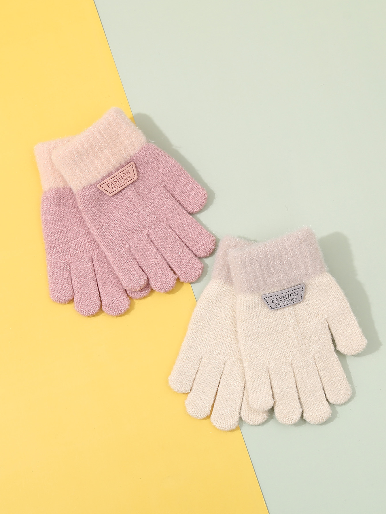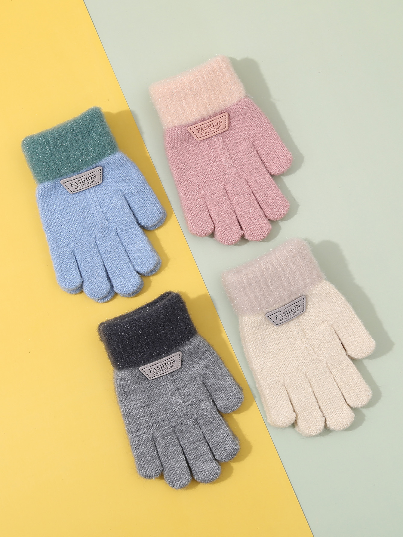 가을과 겨울 어린이 장갑 다섯 손가락 기모 두꺼운 어린이 장갑 소녀 귀여운 만화 아기 니트 장갑 도매