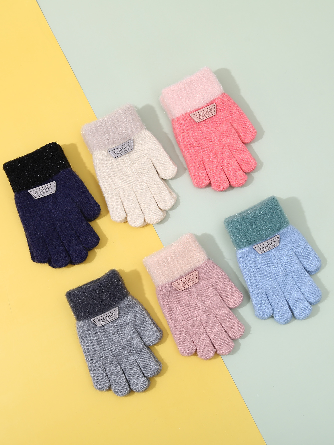 가을과 겨울 어린이 장갑 다섯 손가락 기모 두꺼운 어린이 장갑 소녀 귀여운 만화 아기 니트 장갑 도매스토어 가기