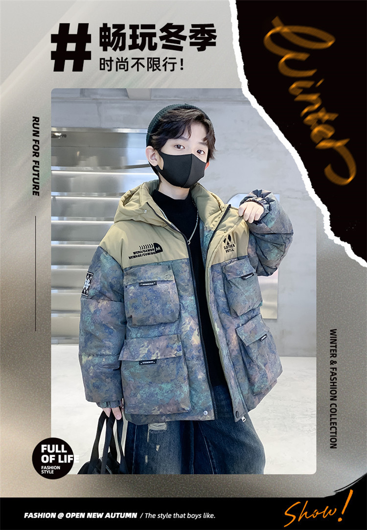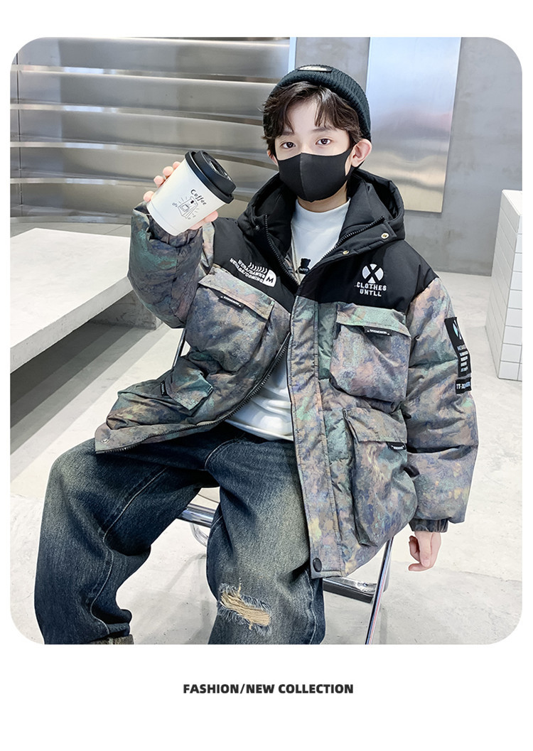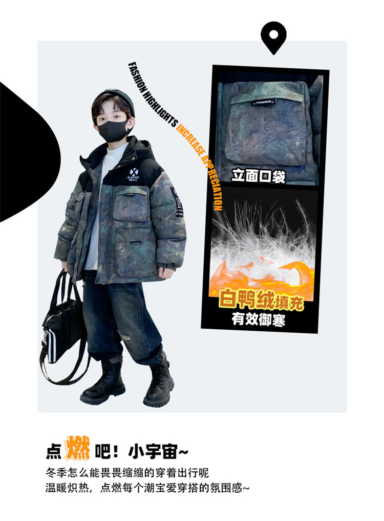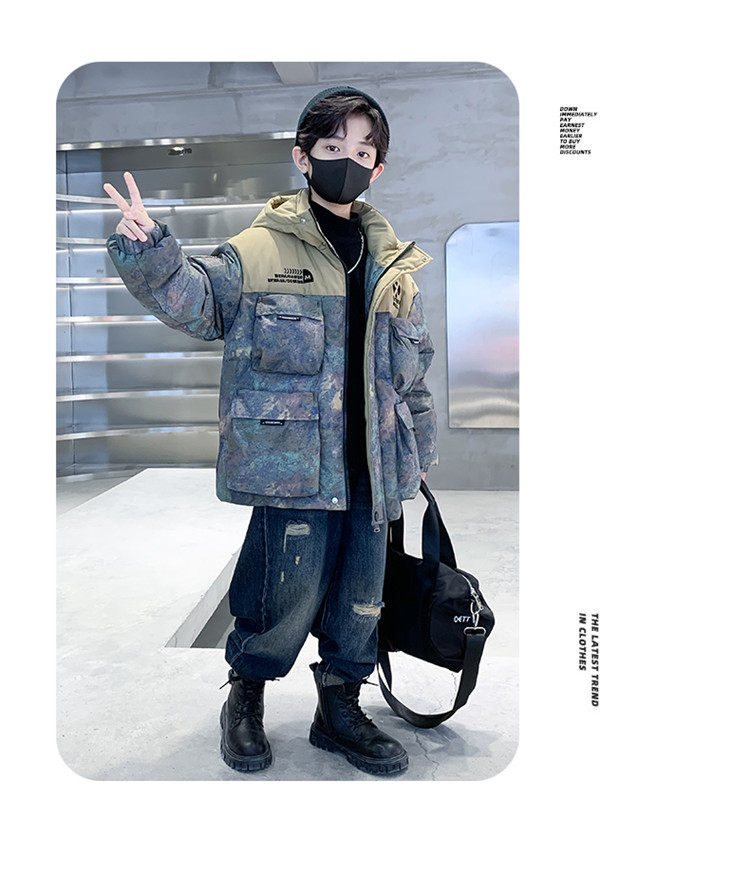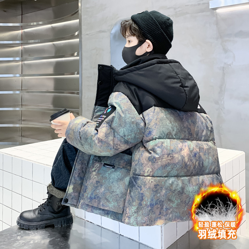 아동복 소년 겨울 다운 재킷 2024 새로운 소년 흰 오리 겨울 중간과 큰 어린이 코트 두꺼운 서양식스토어 가기