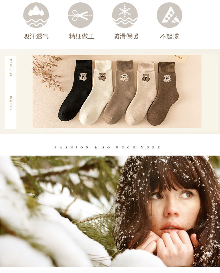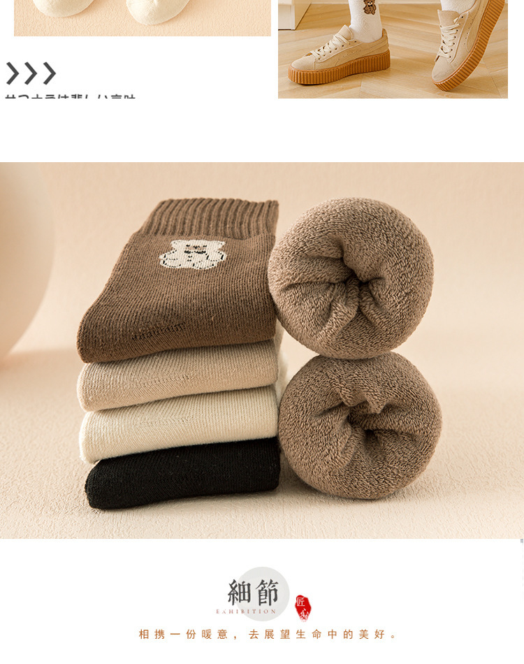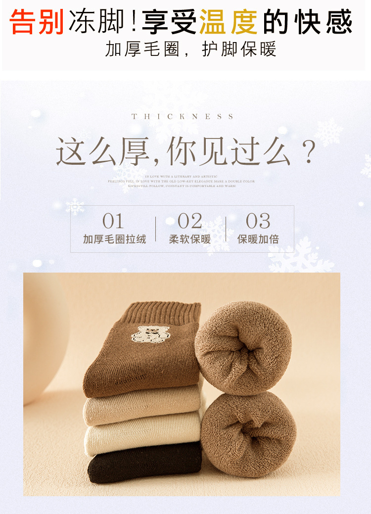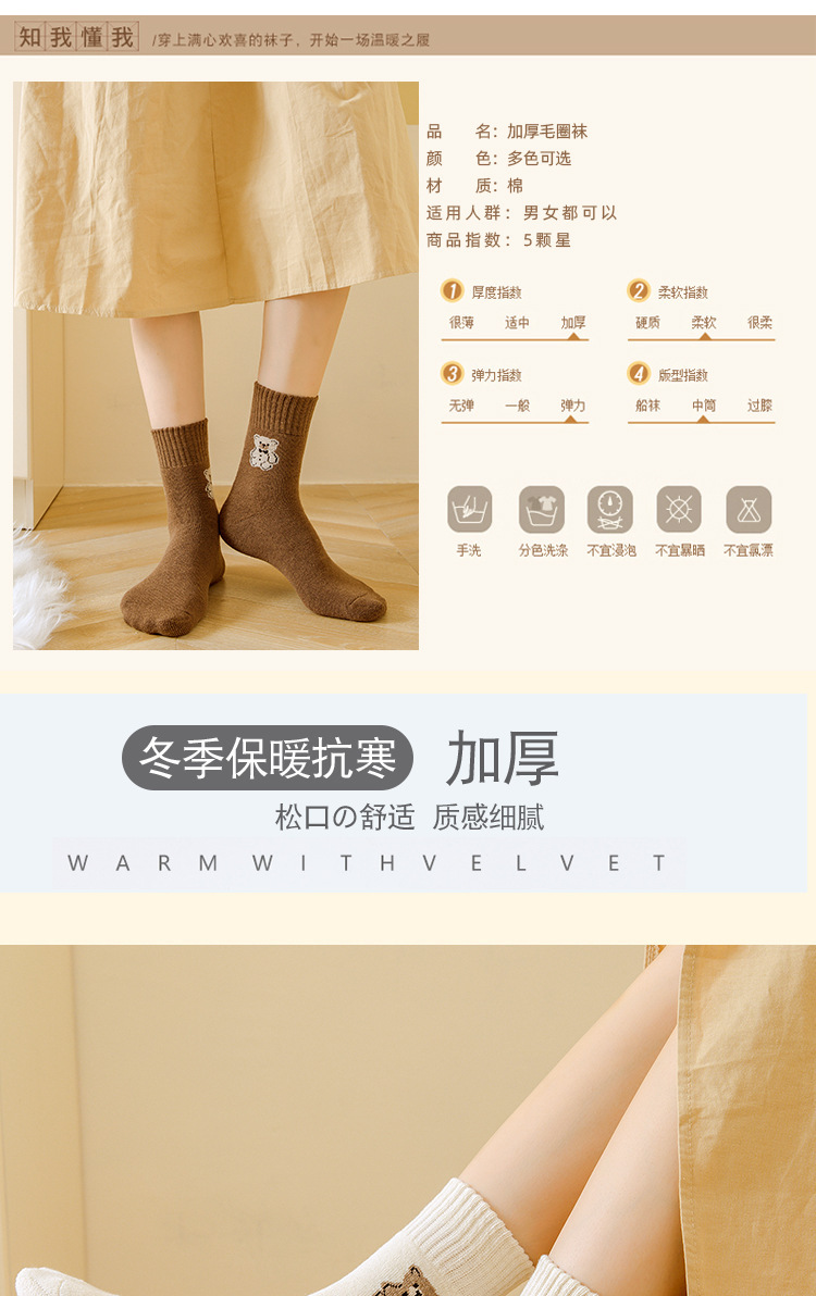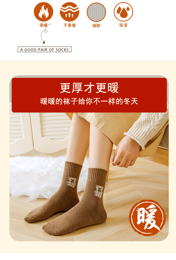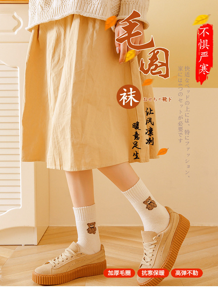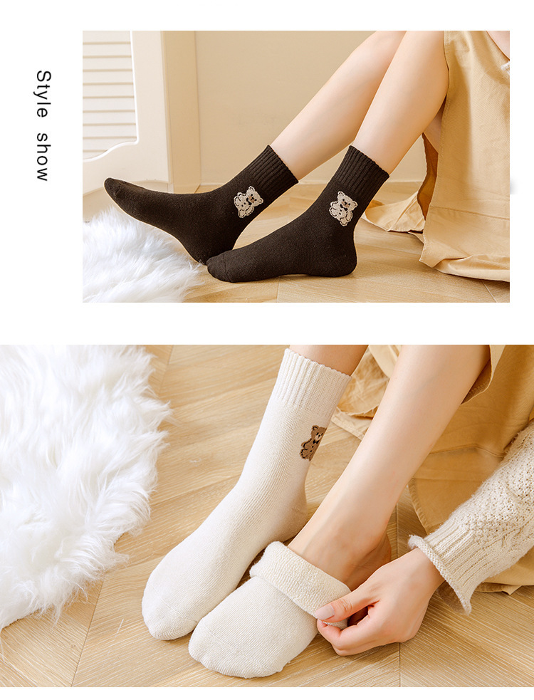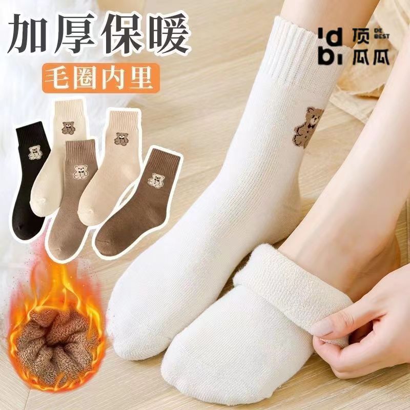 양말 여성 가을과 겨울 두꺼운 따뜻한 곰 테리 양말 기모 수건 양말 일본 여성 바닥 양말 도매스토어 가기