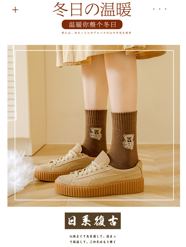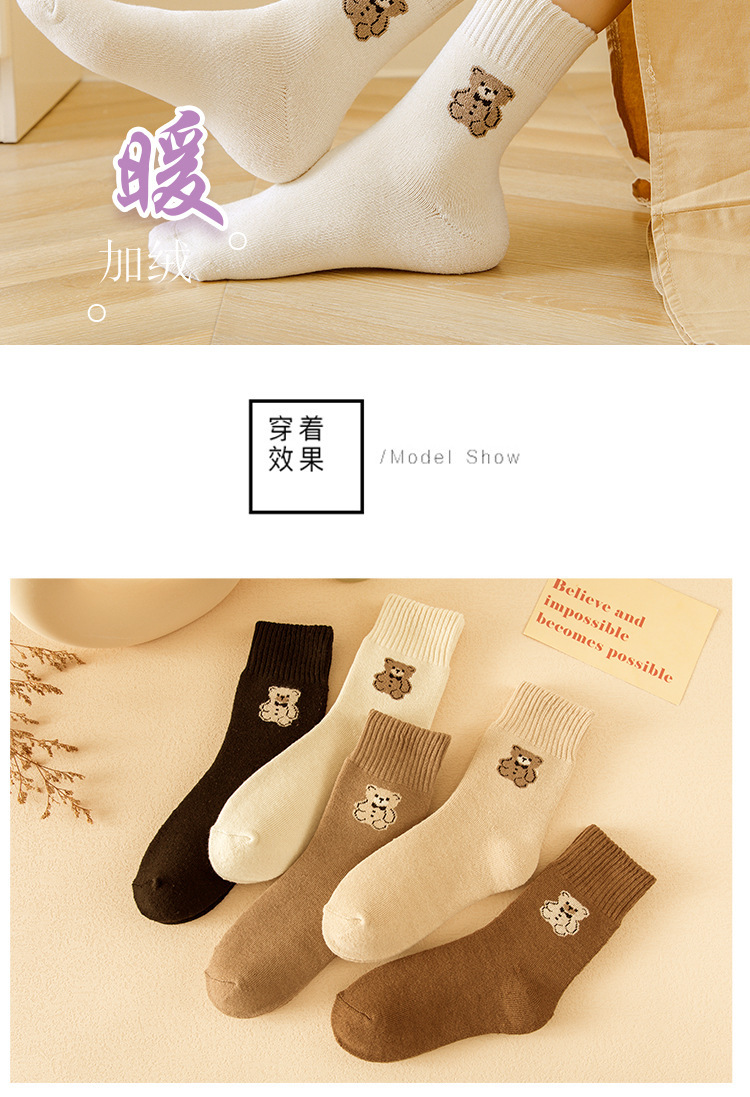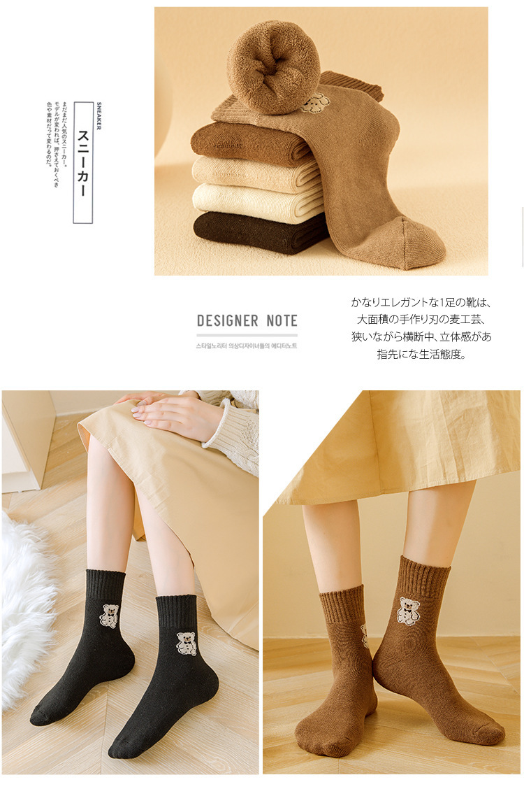 양말 여성 가을과 겨울 두꺼운 따뜻한 곰 테리 양말 기모 수건 양말 일본 여성 바닥 양말 도매