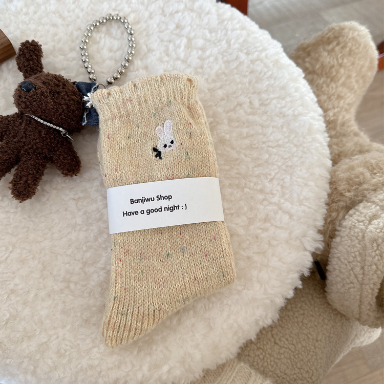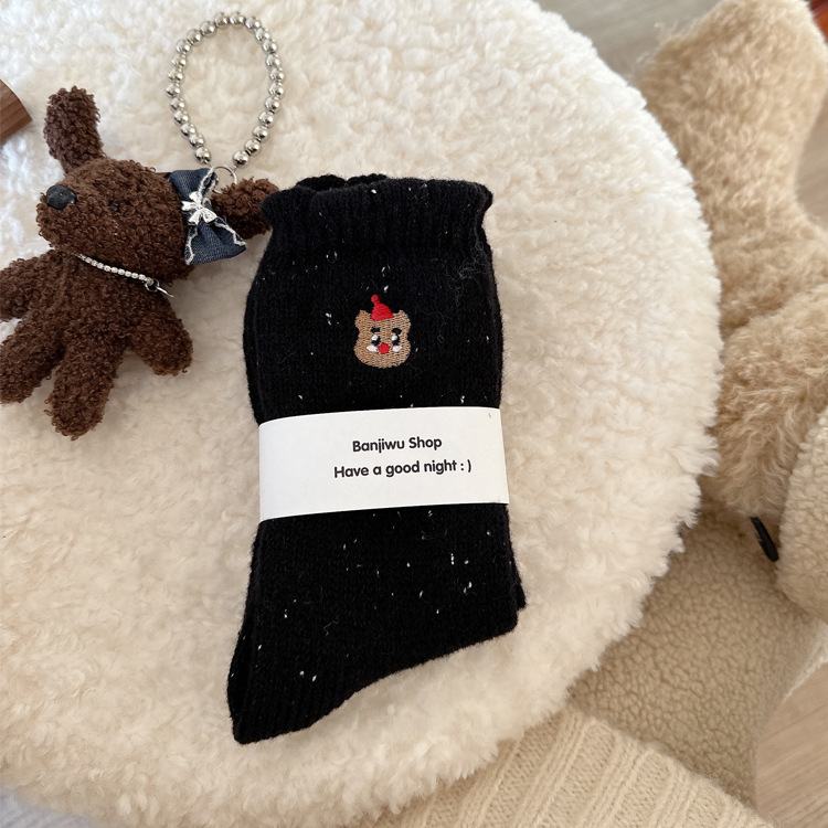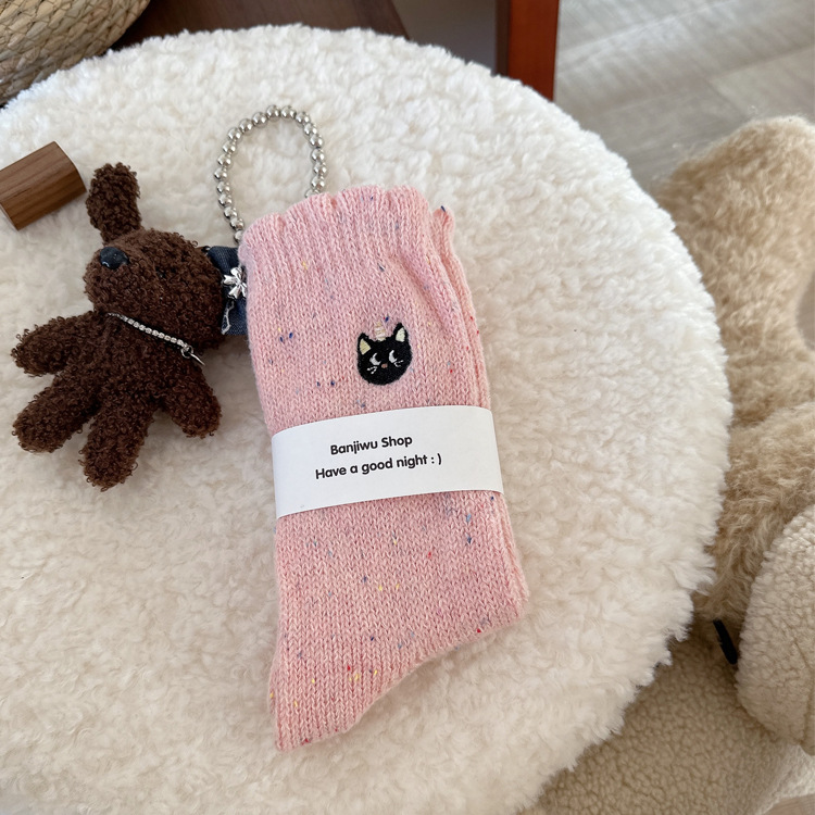 양말 여성의 겨울 두꺼운 따뜻한 포인트 원사 두꺼운 바늘 양말 여성용 양말 귀여운 자수 더미 양말 여성용 양말스토어 가기