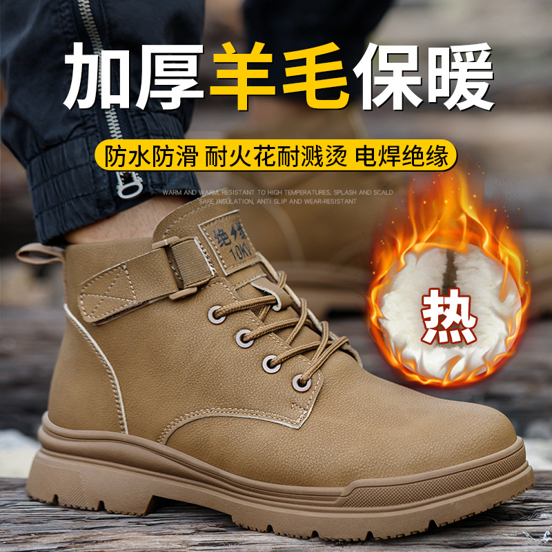 새로운 양모 노동 보호 신발 남성용 하이 탑 두꺼운 따뜻한 안전 신발 스매싱 방지 및 피어싱 방지 경량 미끄럼 방지 건설 현장 신발