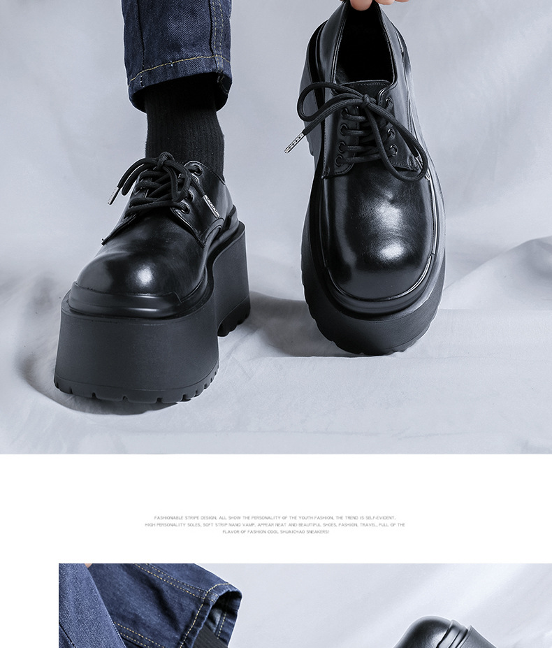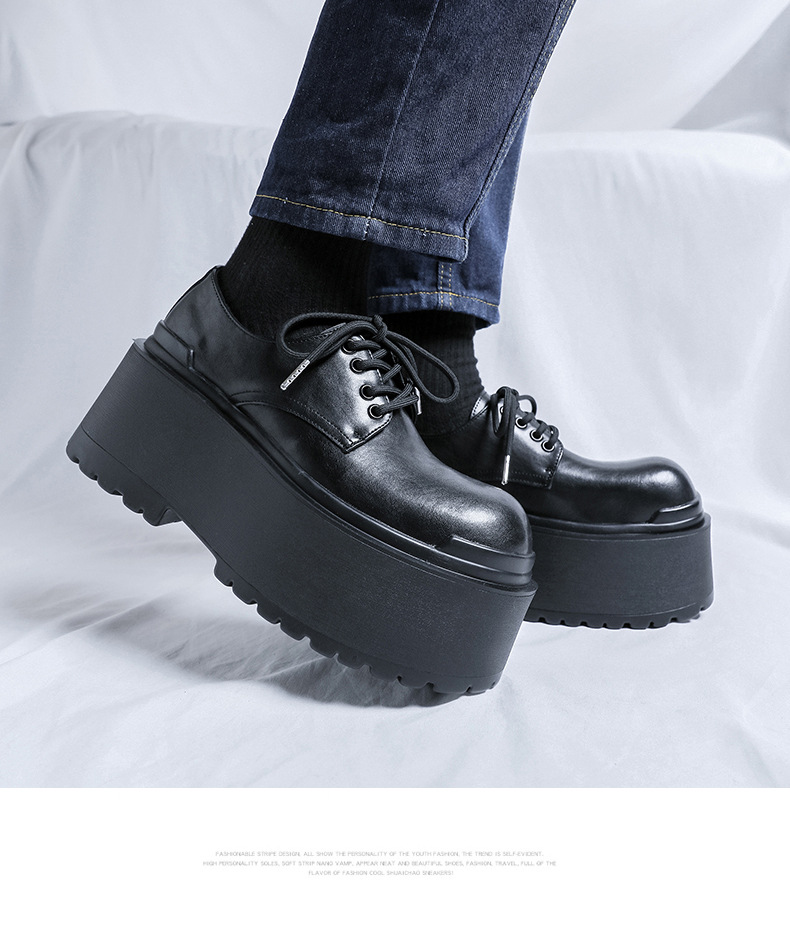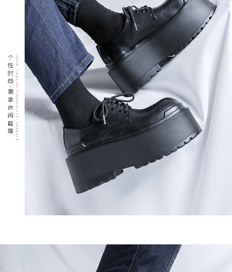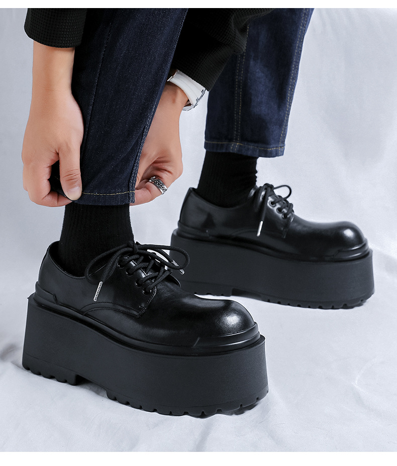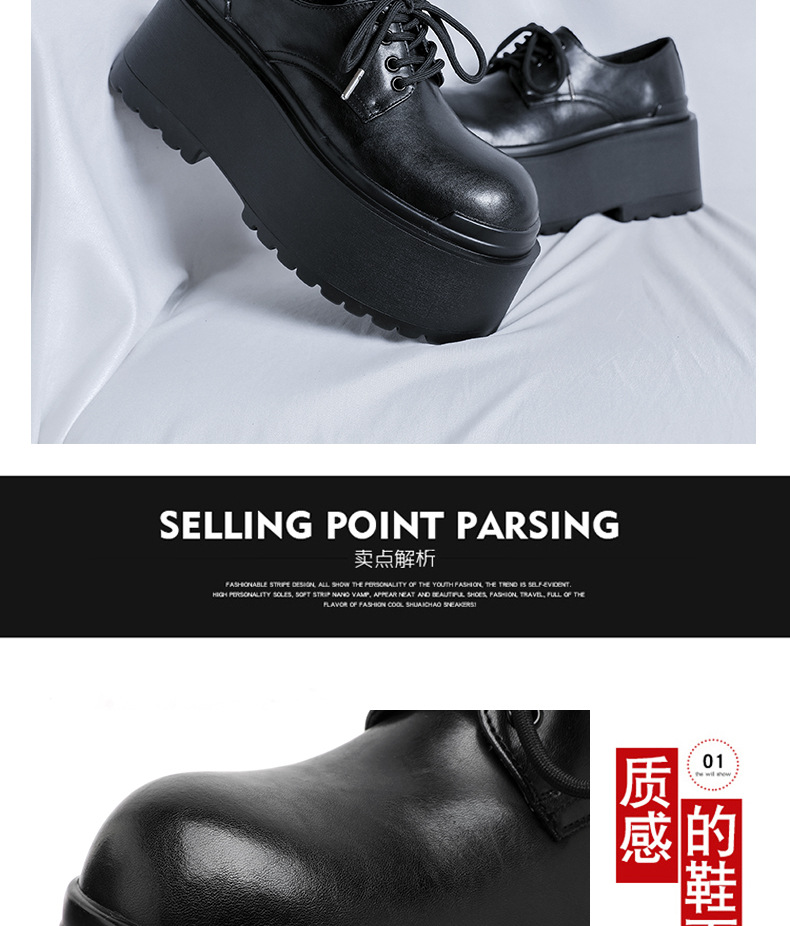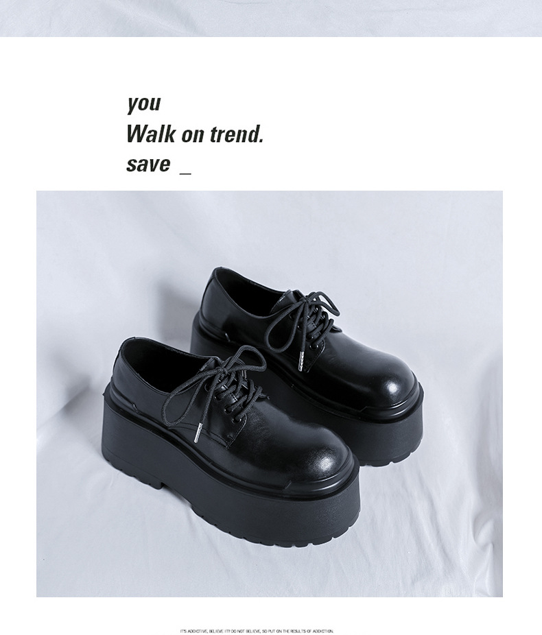 2024 년 가을과 겨울 새로운 파리 워킹 쇼 두꺼운 단독 높이 증가 맞춤형 디자인 캐주얼 경량 라운드 발가락 더비 신발스토어 가기