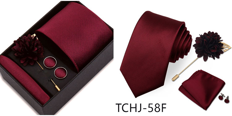 비즈니스 남성 넥타이 스퀘어 스퀘어 코세이지 선물 상자 4 피스 세트 신랑 순수한 버건디 검은 줄무늬 세트 긴 넥타이스토어 가기