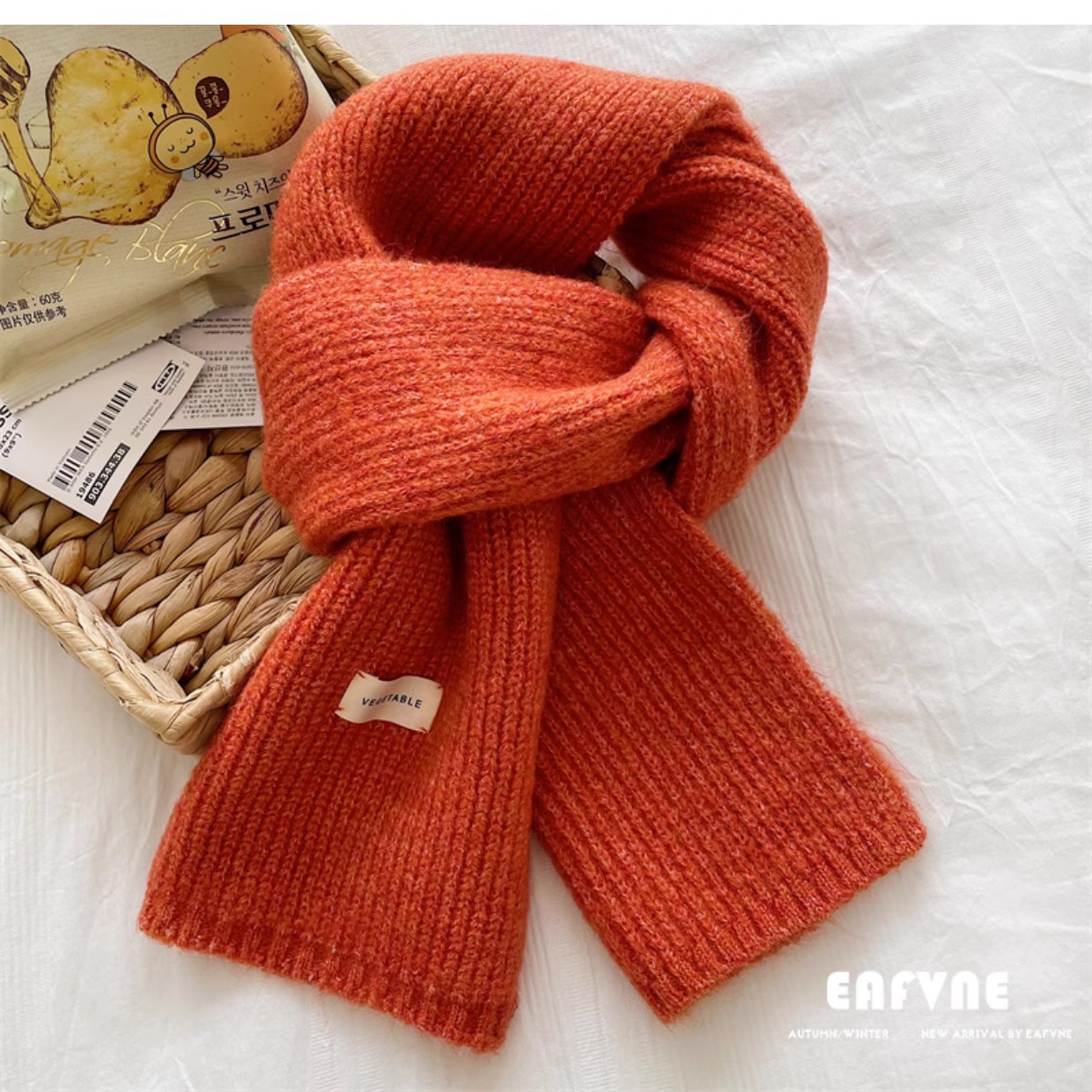 한국 어니 젠틀 단색 작은 스카프 흰색 니트 양모 짧은 스카프 여성의 가을과 겨울 연인을위한 따뜻한 간단한 스타일