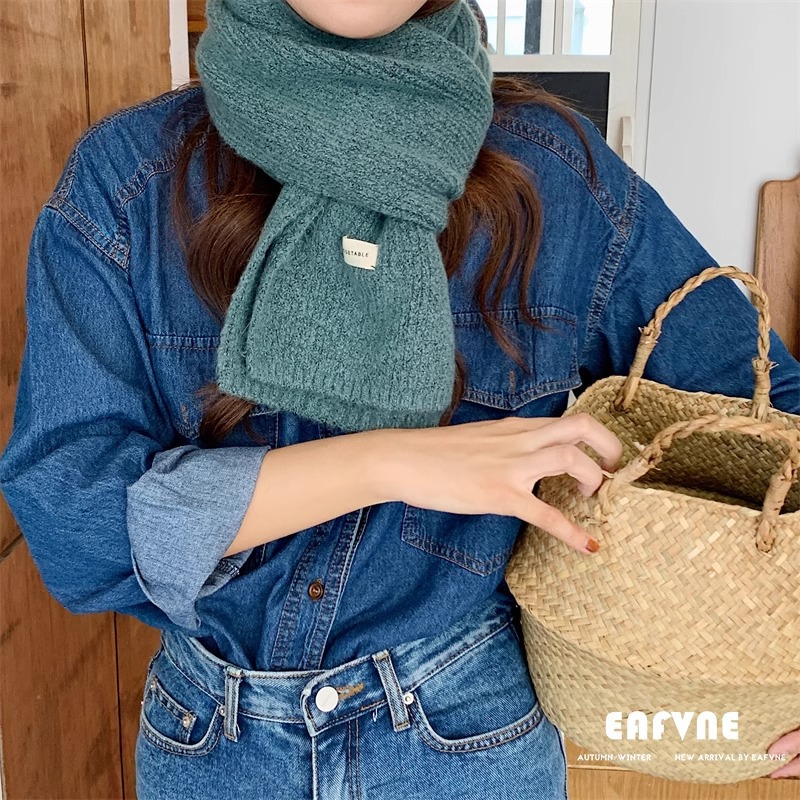 한국 어니 젠틀 단색 작은 스카프 흰색 니트 양모 짧은 스카프 여성의 가을과 겨울 연인을위한 따뜻한 간단한 스타일스토어 가기