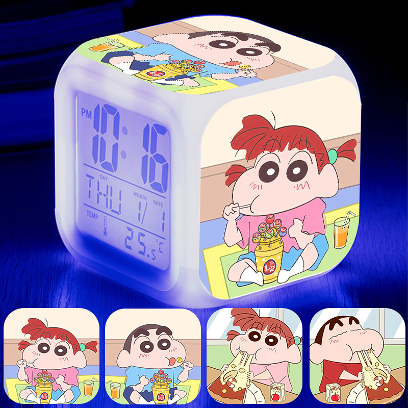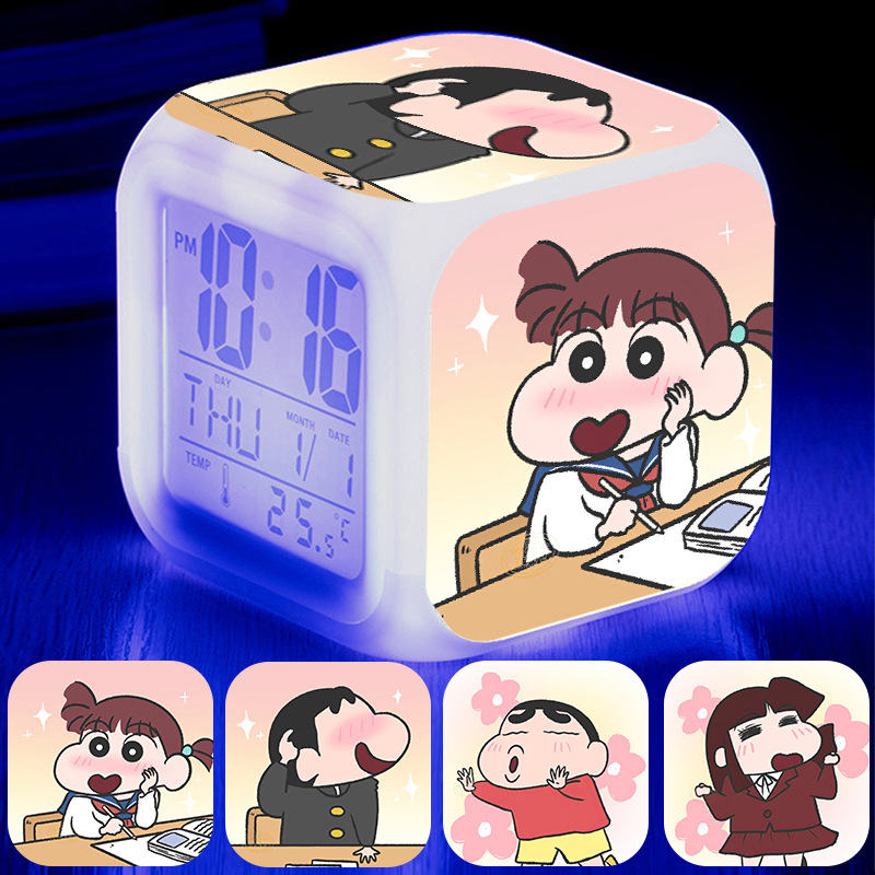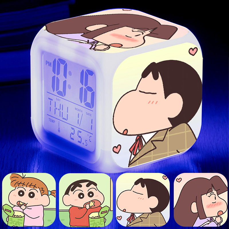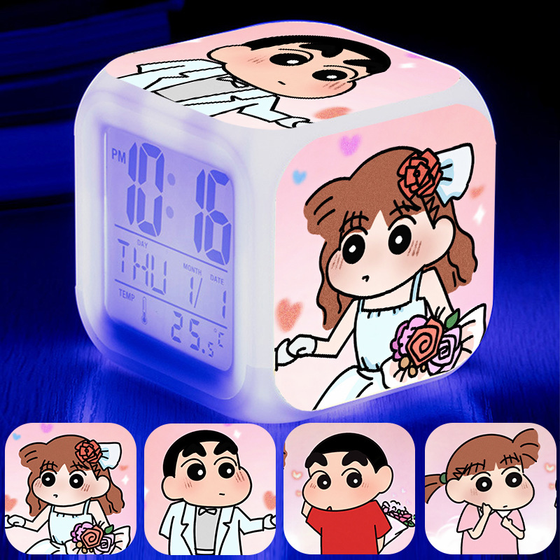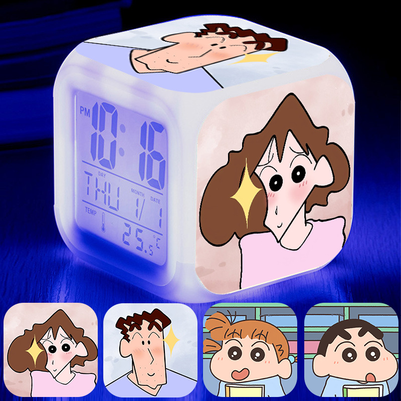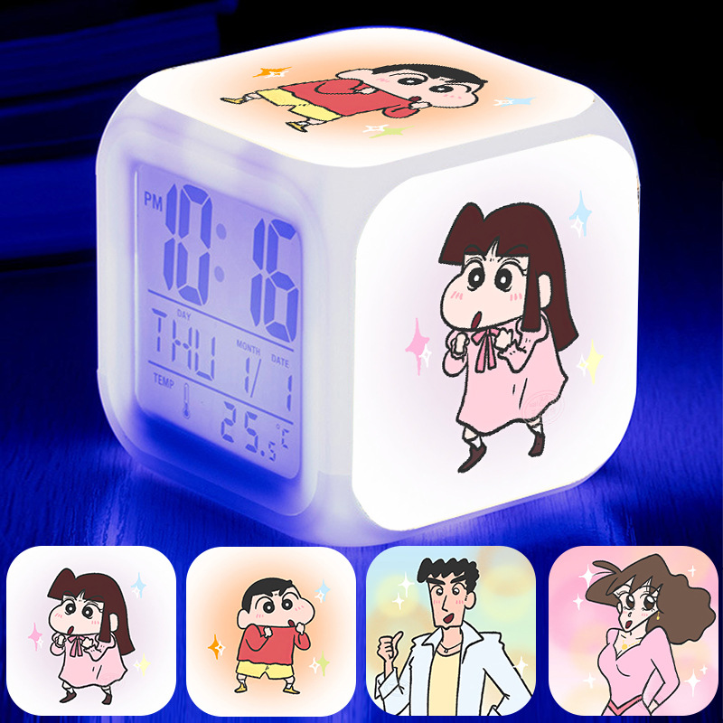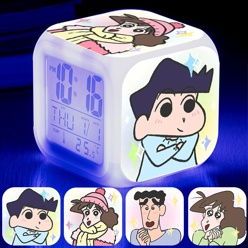 크레용 작은 새로운 알람 시계 만화 귀여운 게임 주변 어린이 led 디지털 다채로운 색상 변경 빛나는 야간 조명 시계스토어 가기