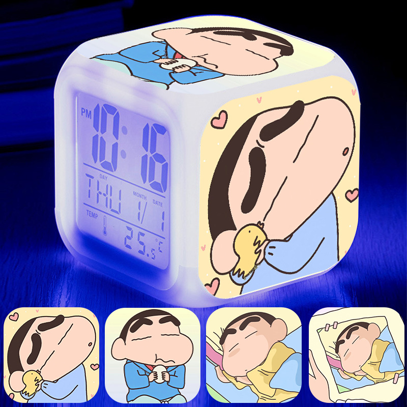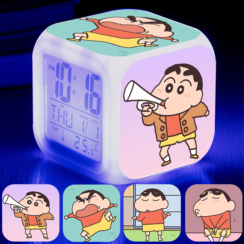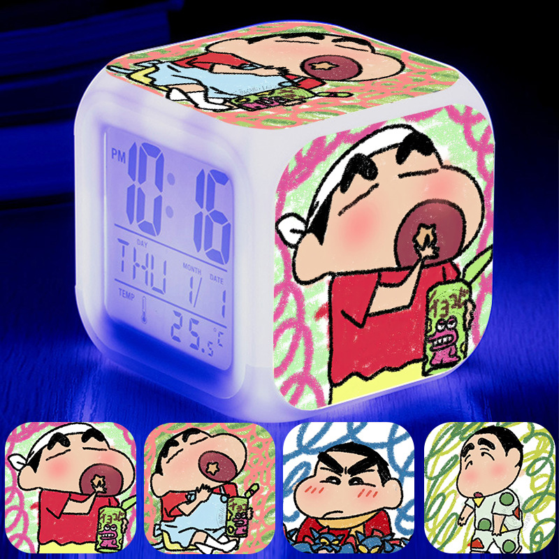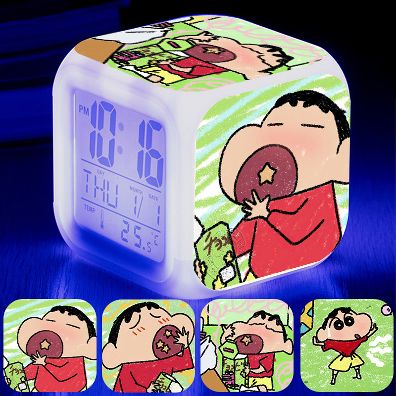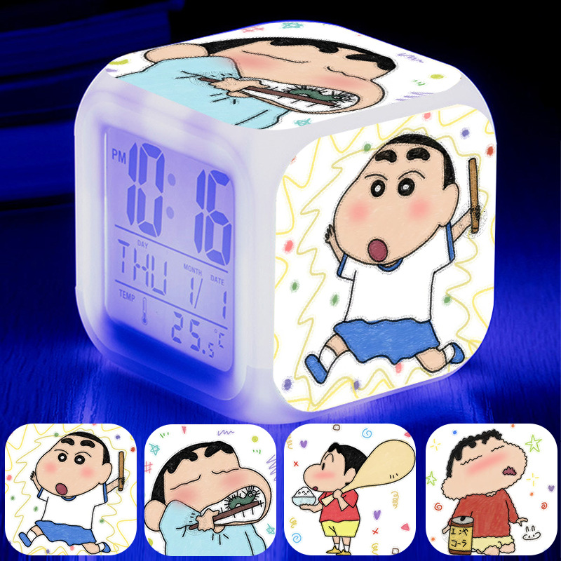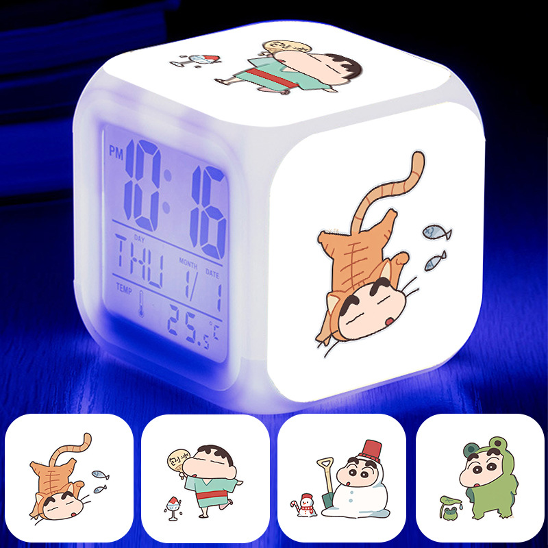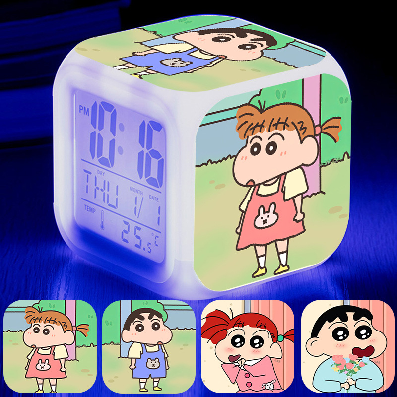 크레용 작은 새로운 알람 시계 만화 귀여운 게임 주변 어린이 led 디지털 다채로운 색상 변경 빛나는 야간 조명 시계스토어 가기