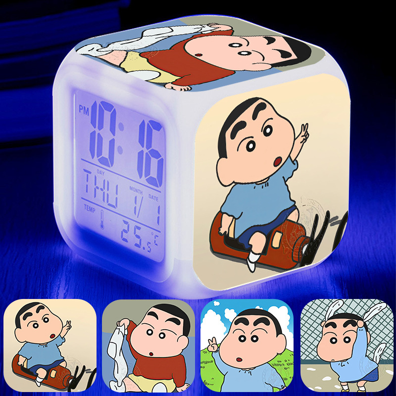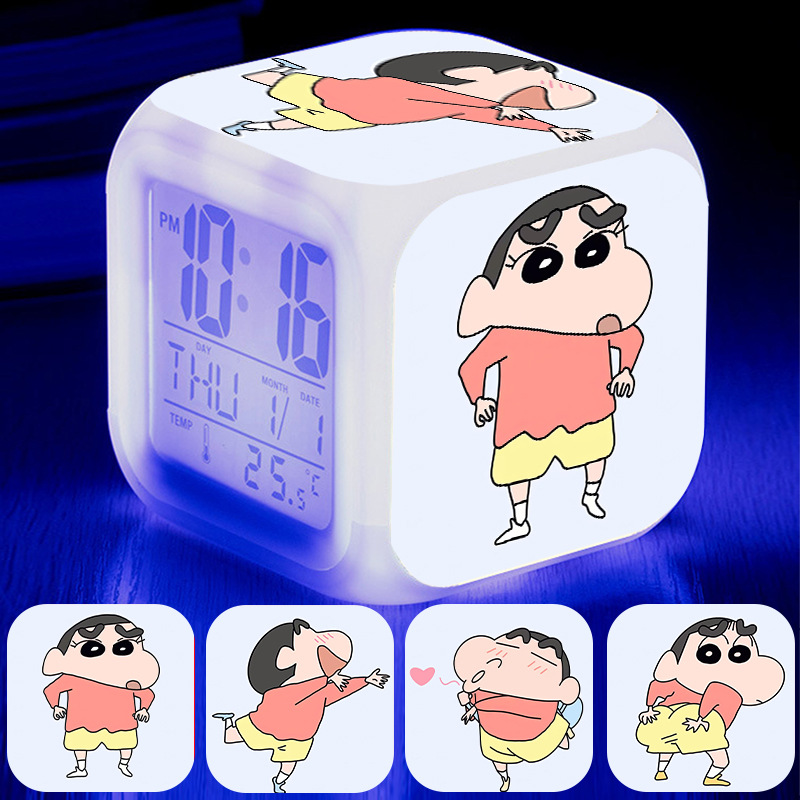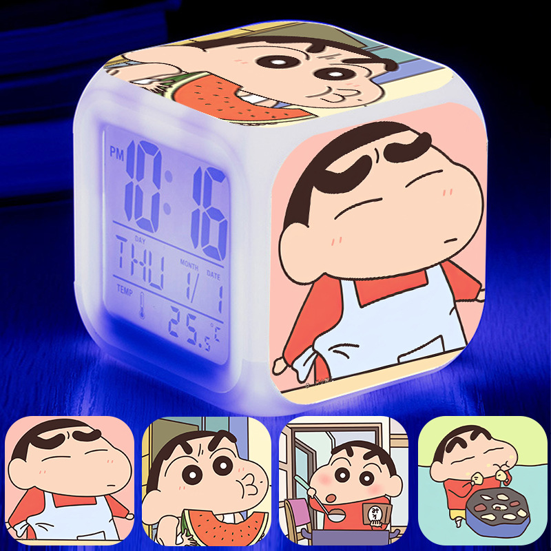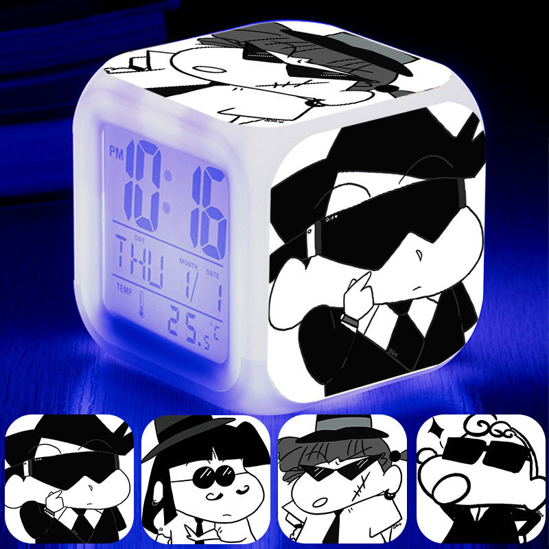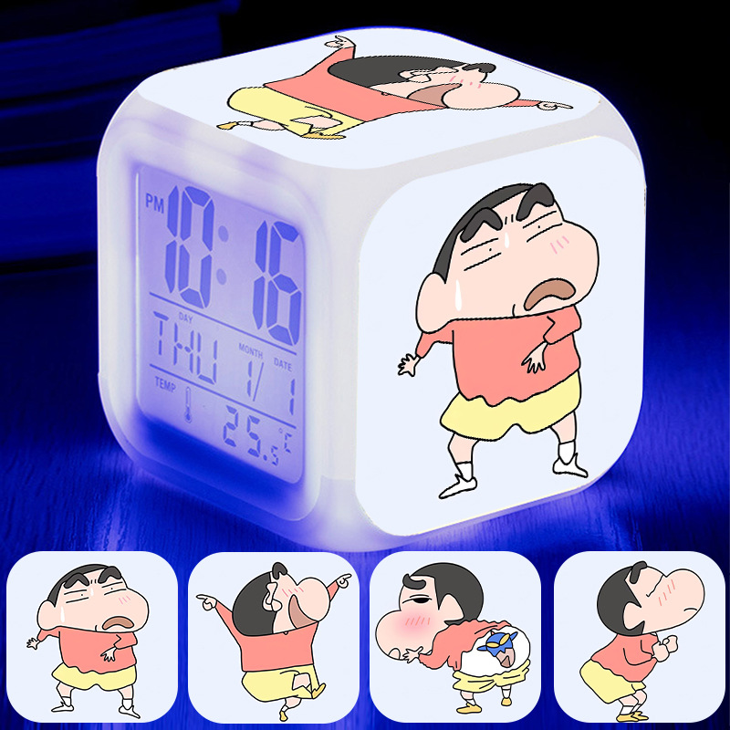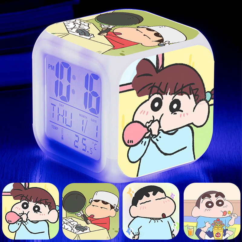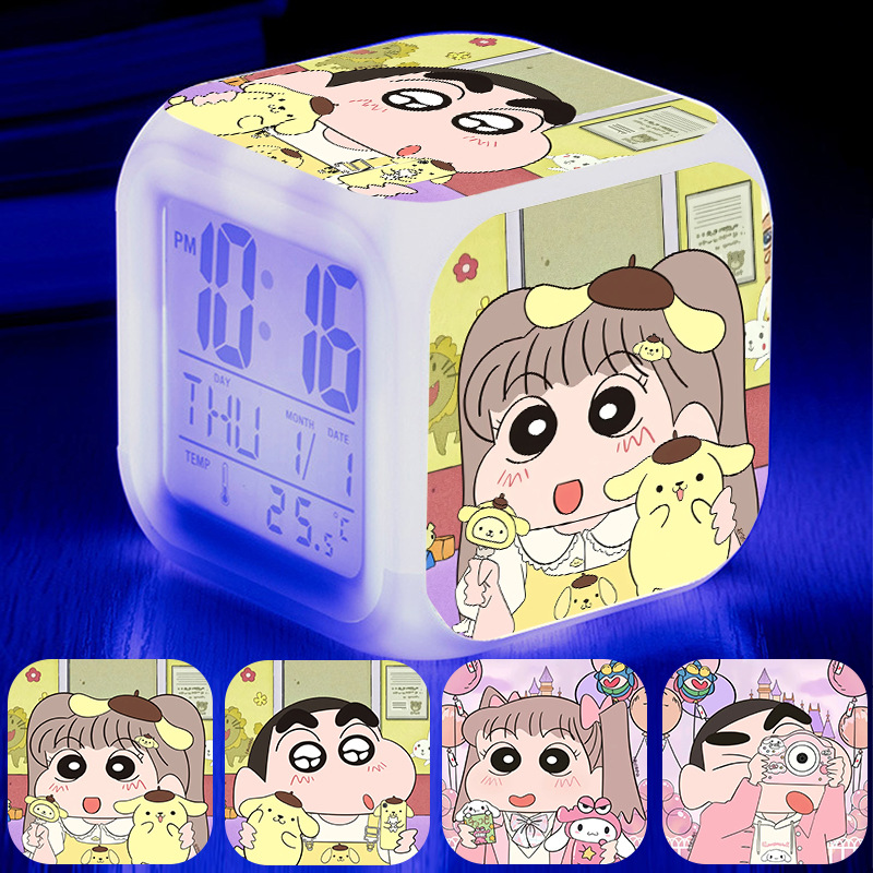 크레용 작은 새로운 알람 시계 만화 귀여운 게임 주변 어린이 led 디지털 다채로운 색상 변경 빛나는 야간 조명 시계스토어 가기