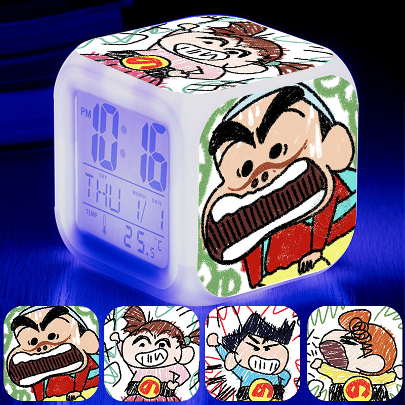 크레용 작은 새로운 알람 시계 만화 귀여운 게임 주변 어린이 led 디지털 다채로운 색상 변경 빛나는 야간 조명 시계