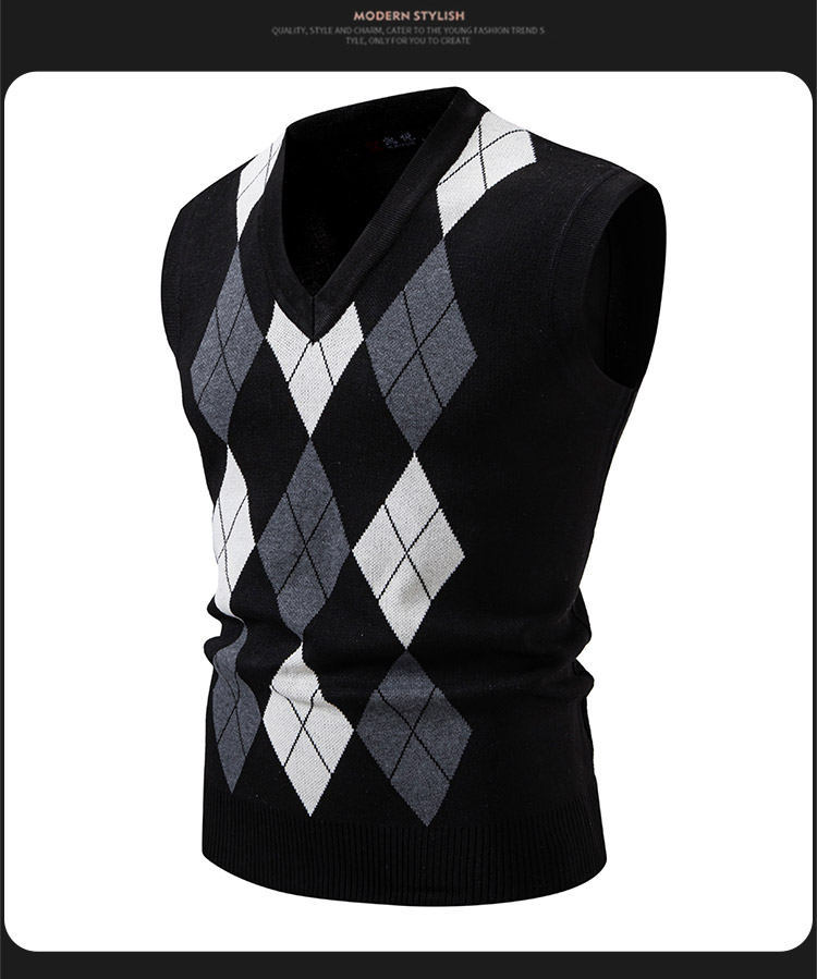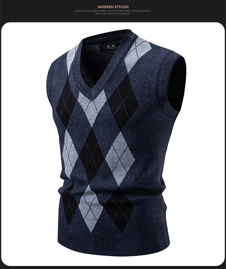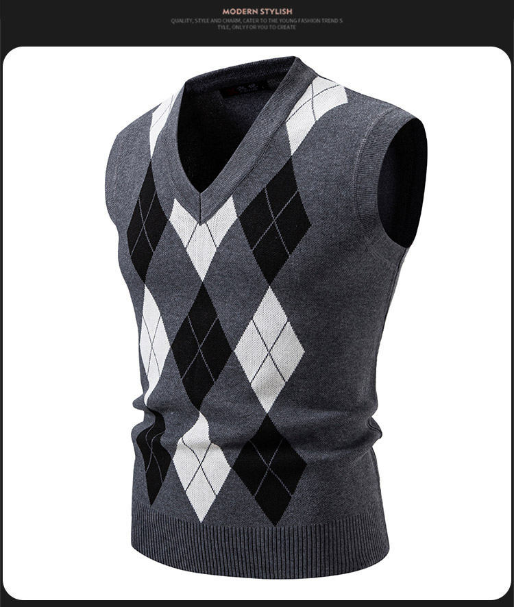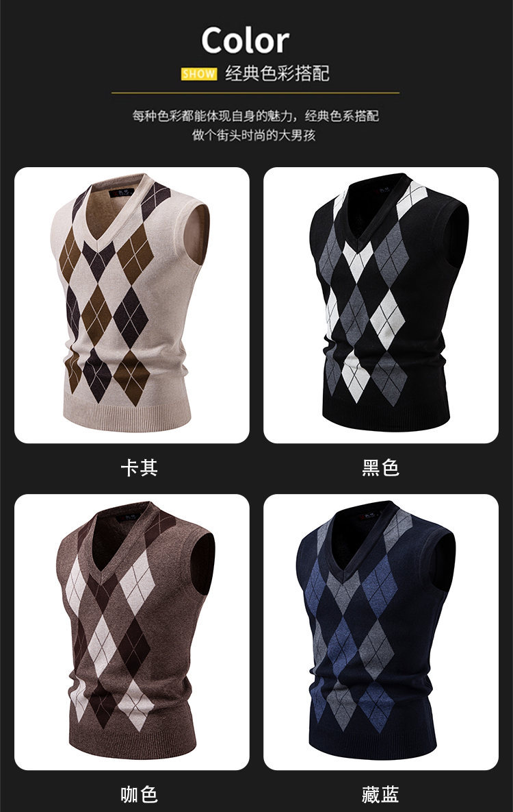 국경 간 대외 무역 가을과 겨울 새로운 남성 패션 트렌드 격자 무늬 풀오버 캐주얼 스웨터 공장 도매스토어 가기