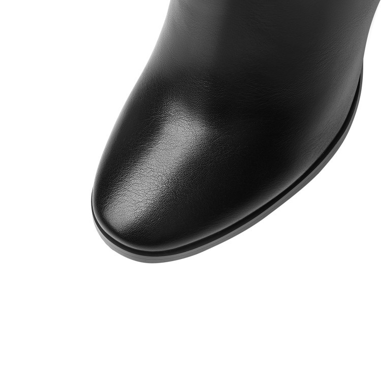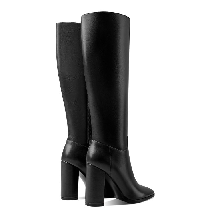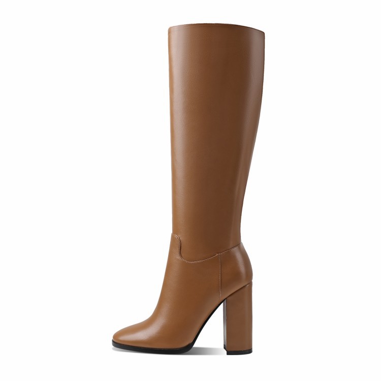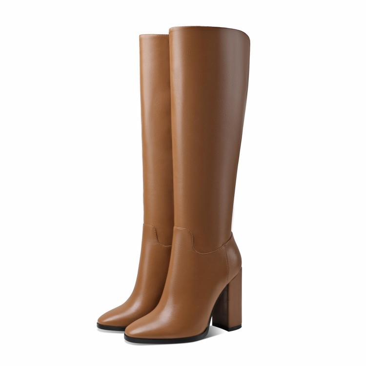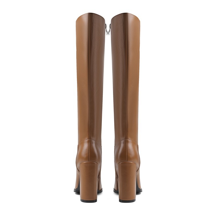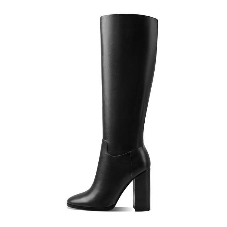 둥근 발가락 두꺼운 굽, 무릎 길이 부츠, 유럽과 미국의 인기 여성 겨울 가죽 부츠