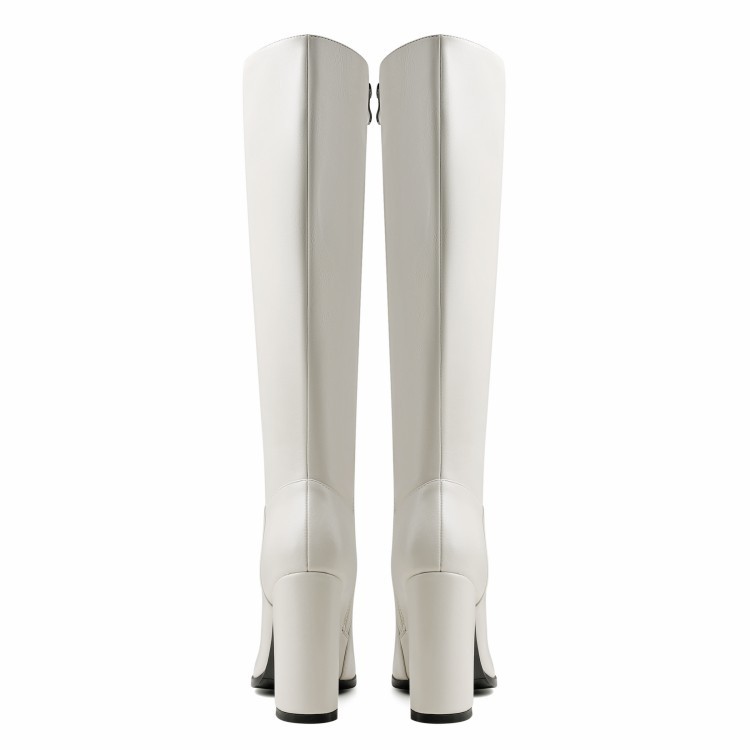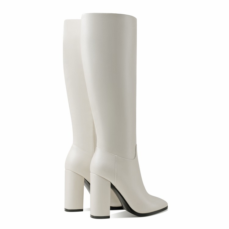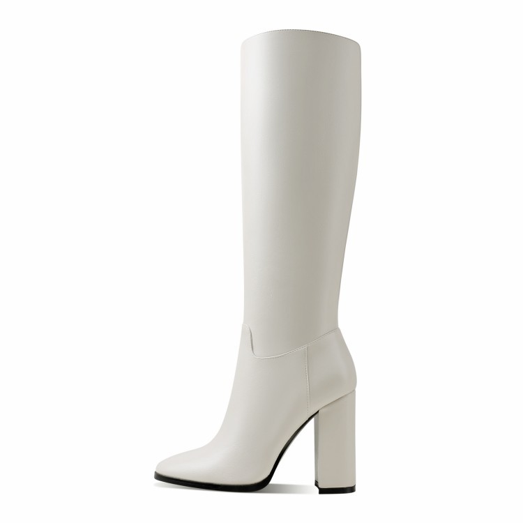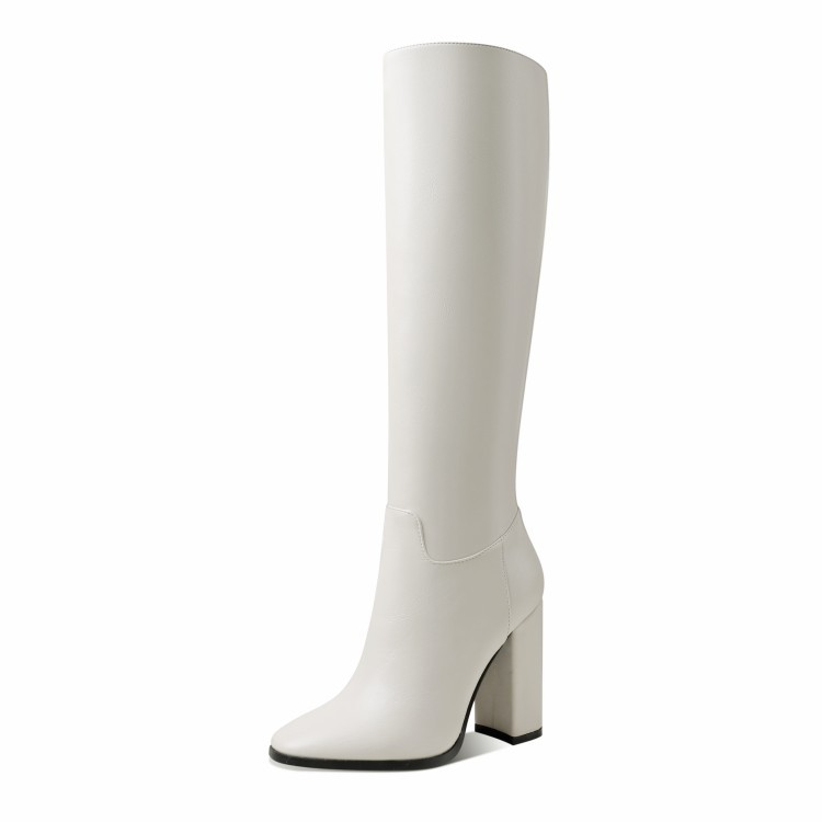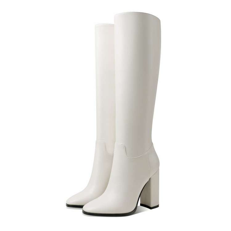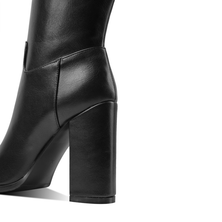 둥근 발가락 두꺼운 굽, 무릎 길이 부츠, 유럽과 미국의 인기 여성 겨울 가죽 부츠
