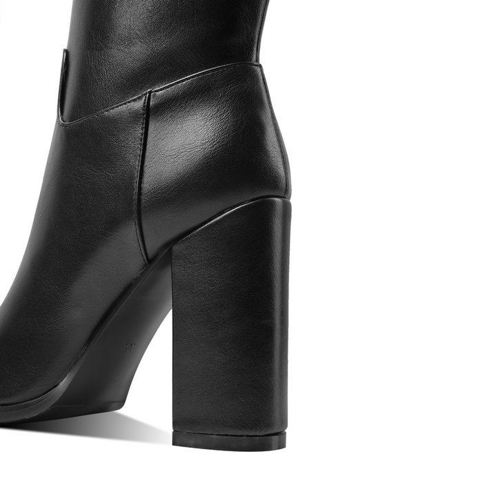 둥근 발가락 두꺼운 굽, 무릎 길이 부츠, 유럽과 미국의 인기 여성 겨울 가죽 부츠스토어 가기