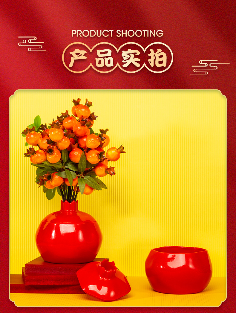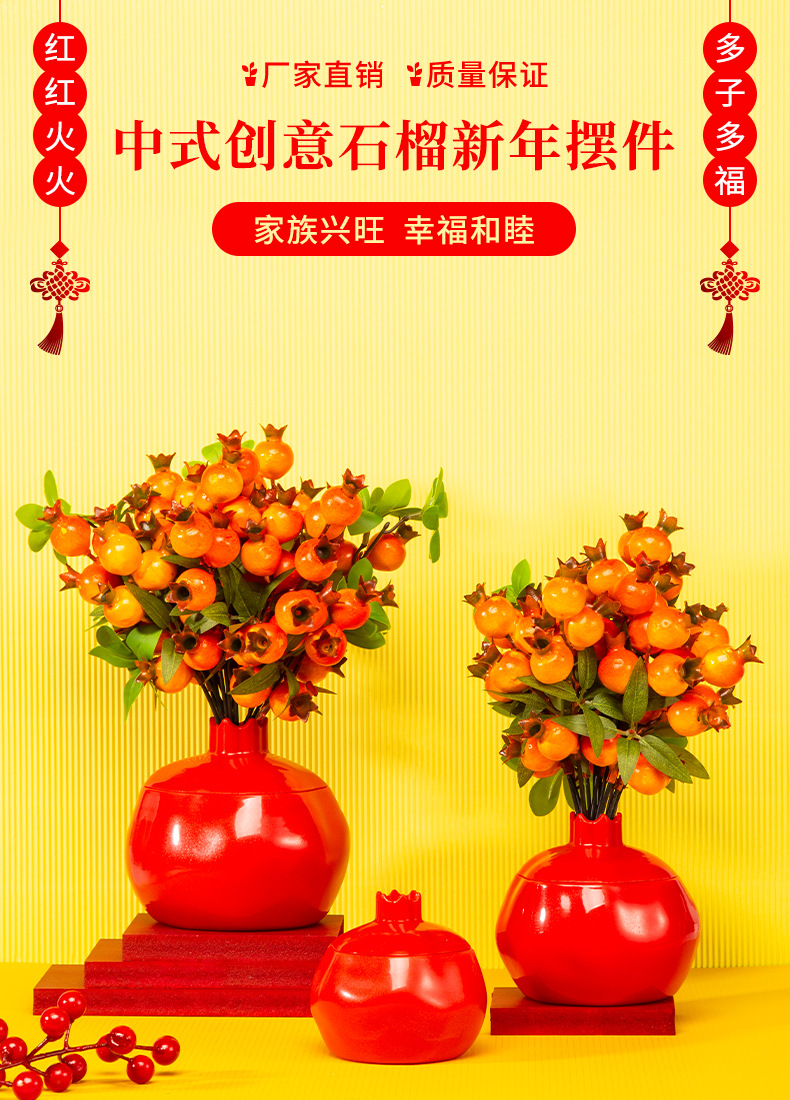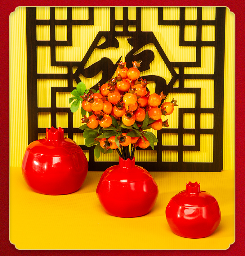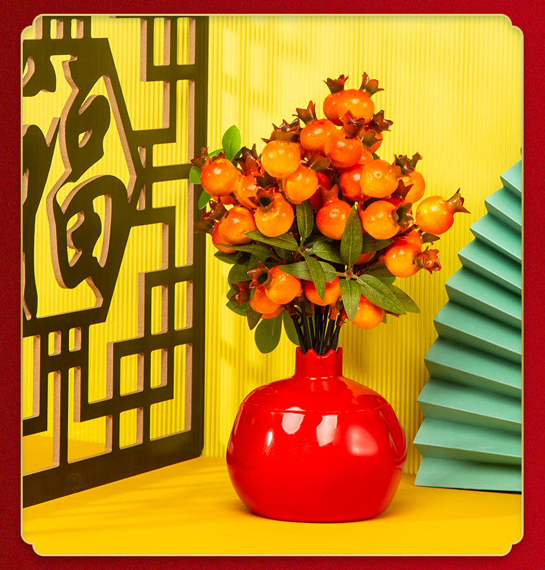 공장 도매 석류 모양 축제 꽃병 새해 장식 장식 모방 세라믹 플라스틱 화분 시뮬레이션 꽃병스토어 가기