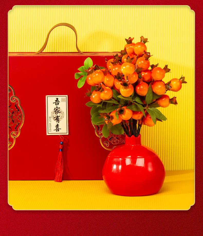 공장 도매 석류 모양 축제 꽃병 새해 장식 장식 모방 세라믹 플라스틱 화분 시뮬레이션 꽃병