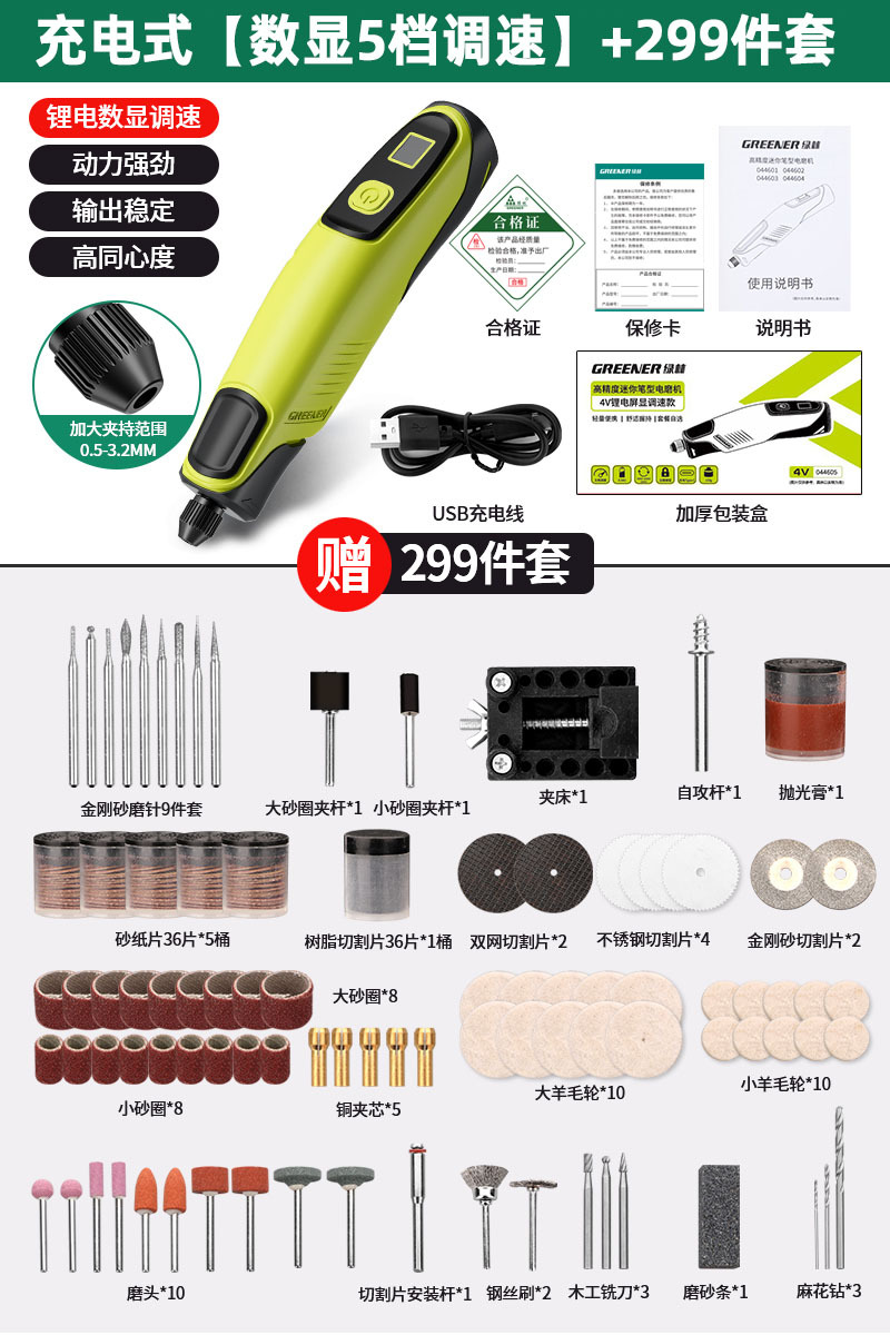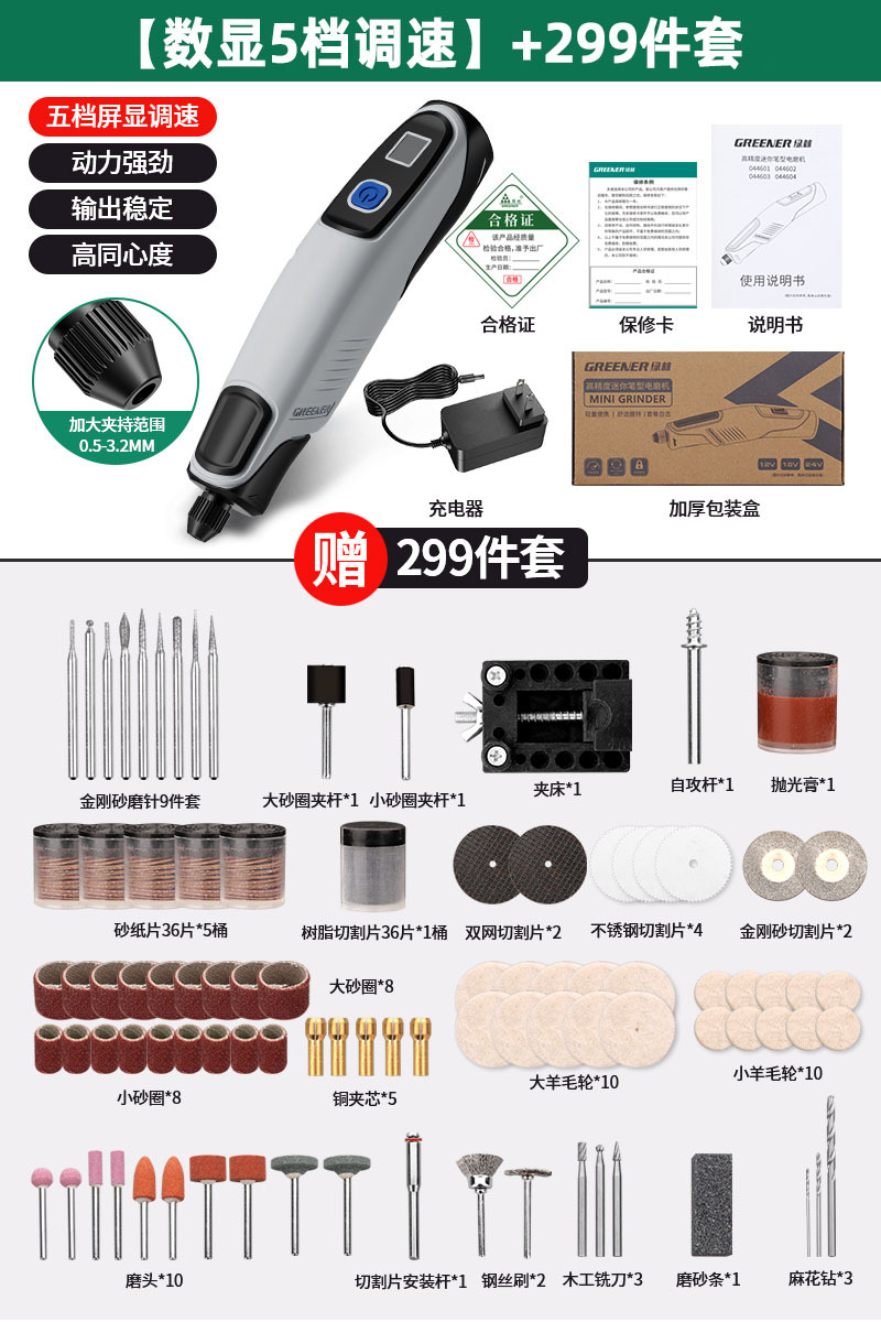 • 충전식 [디지털 디스플레이 5단 속도 조절] + 299개 세트