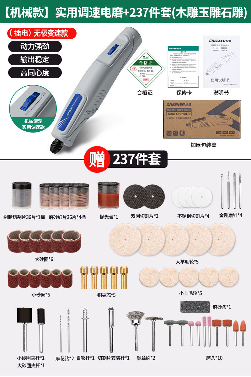• 12V 고정속도 + 237개 세트(목각, 옥조각, 돌조각)