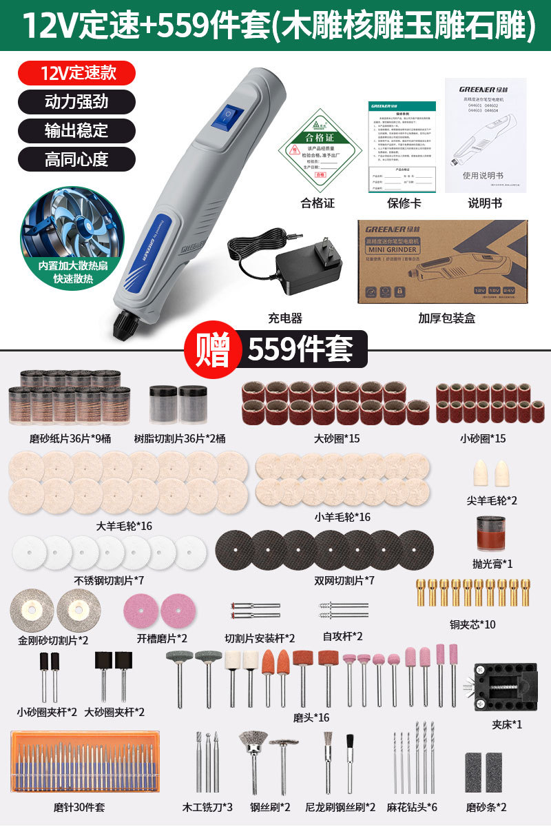 • 12V 고정 속도 + 559개 세트(목각, 코어 조각, 옥 조각, 돌 조각)