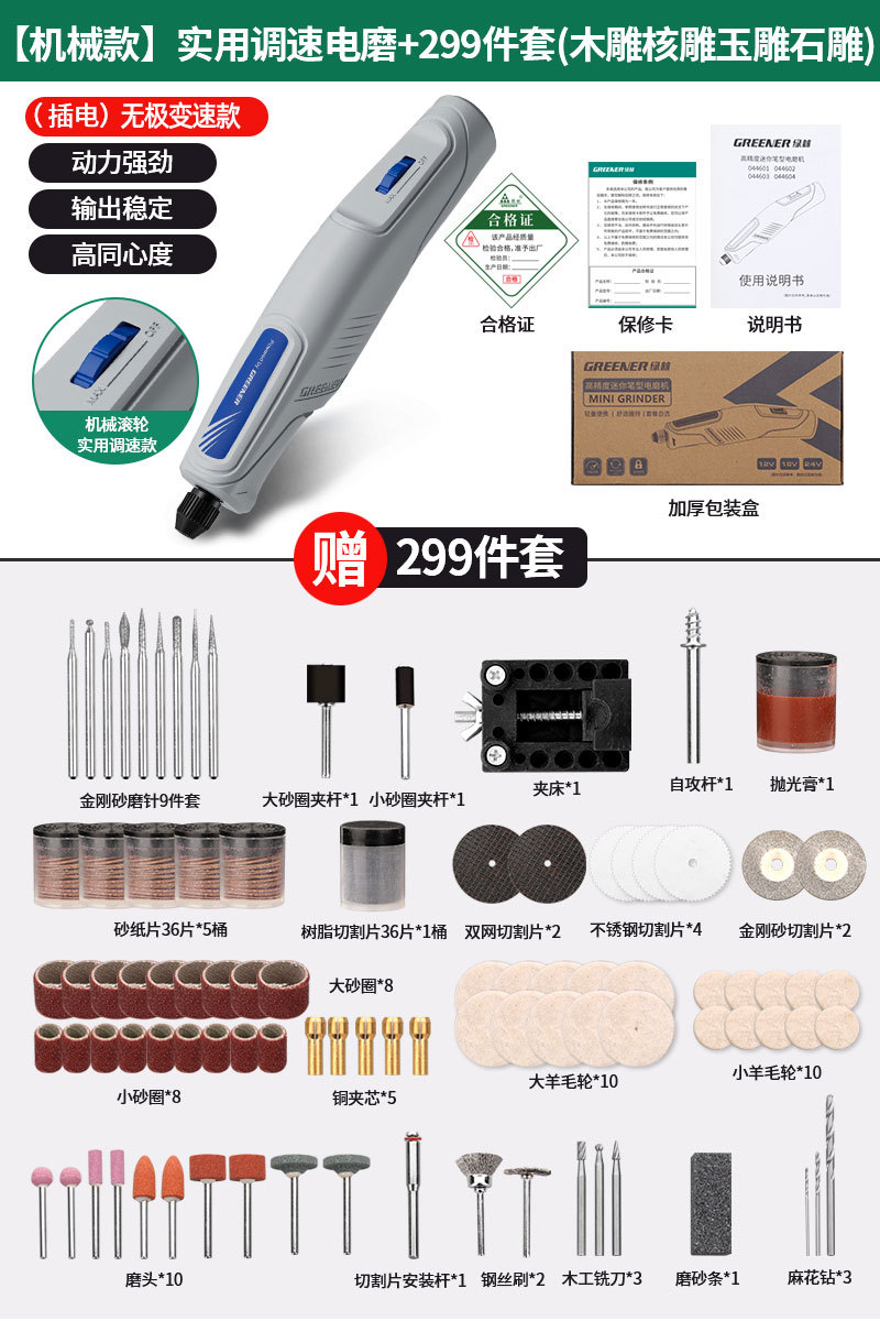 • 12V 고정 속도 + 299개 세트(목각, 코어 조각, 옥 조각, 돌 조각)