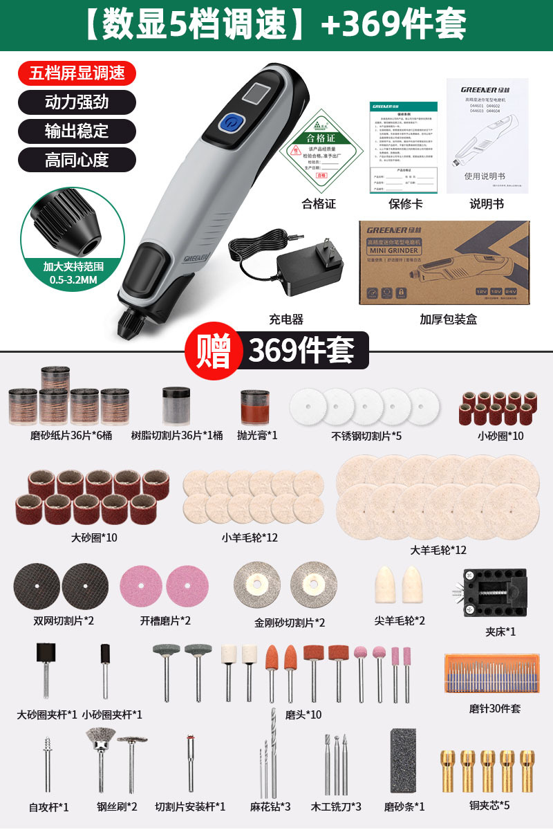 • 충전식 [디지털 디스플레이 5단 속도 조절] + 369개 세트