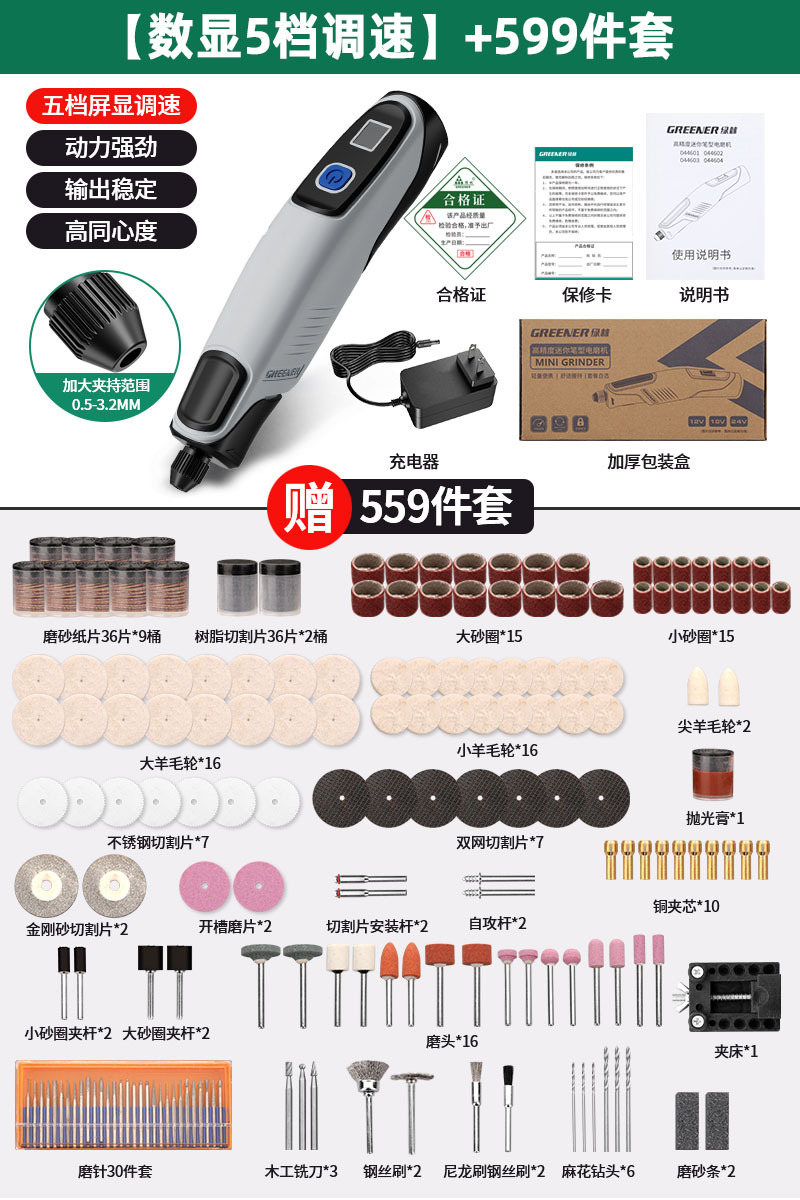 • 충전식 [디지털 디스플레이 5단 속도 조절] + 559개 세트