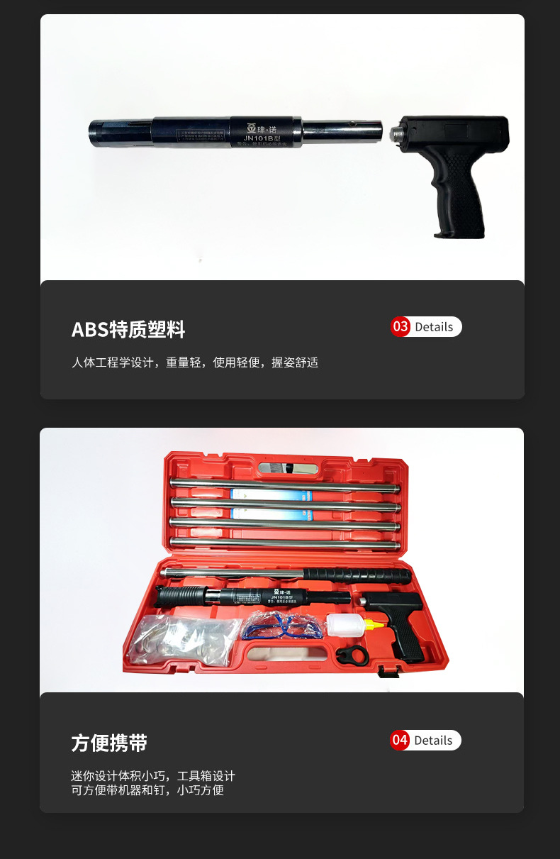 • 수입 ABS 소재 단일 총에는 못 50개와 총 홀더가 함께 제공됩니다.