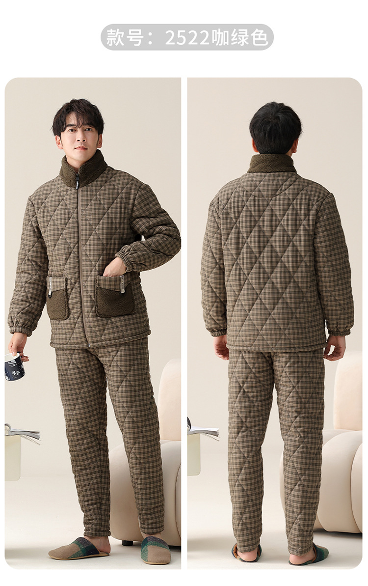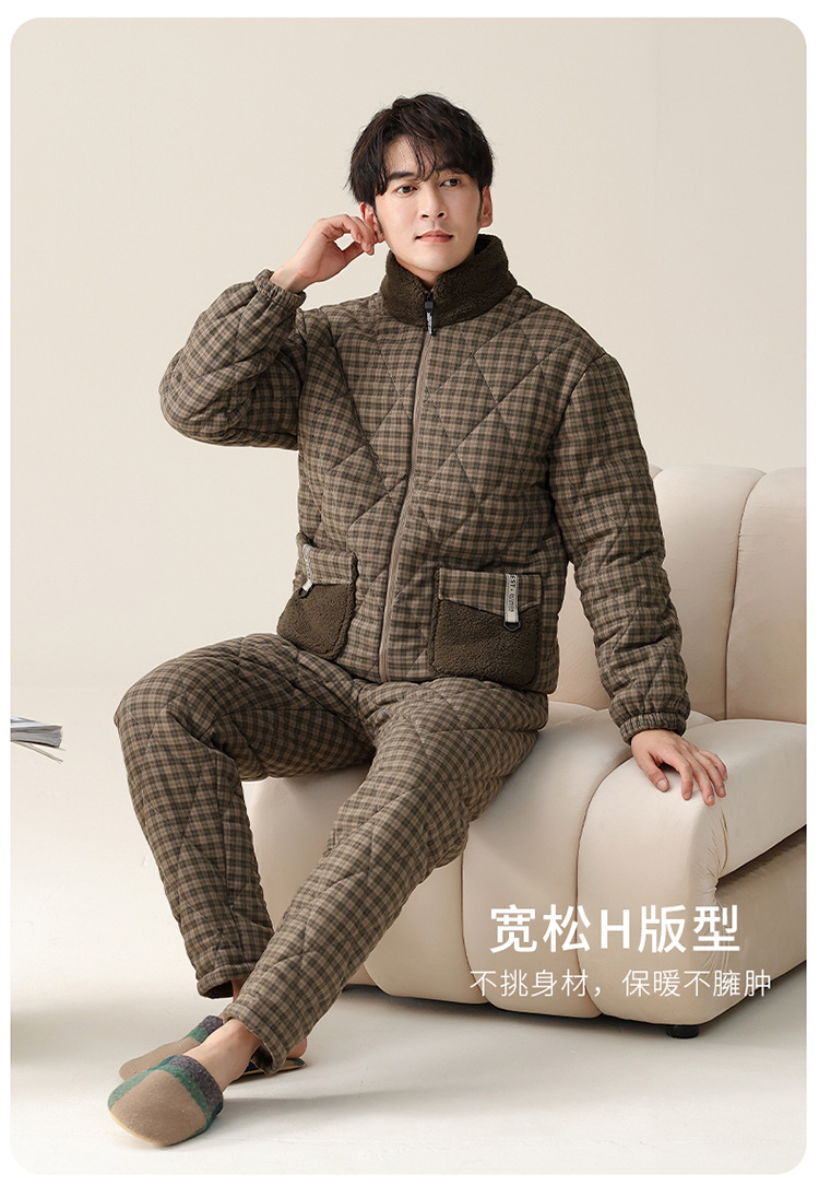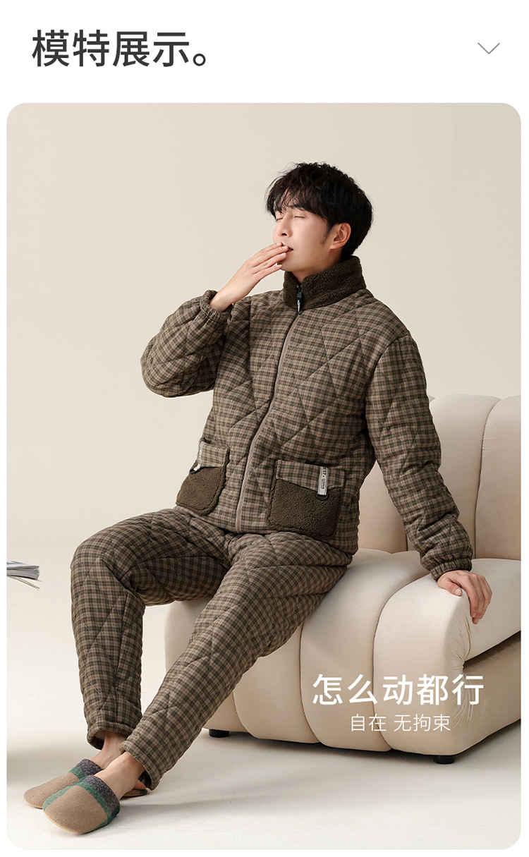 파자마 남자 겨울 3 층 두꺼운 기모 코튼 재킷 2024 년 가을 및 겨울 새로운 의상 홈 의류스토어 가기