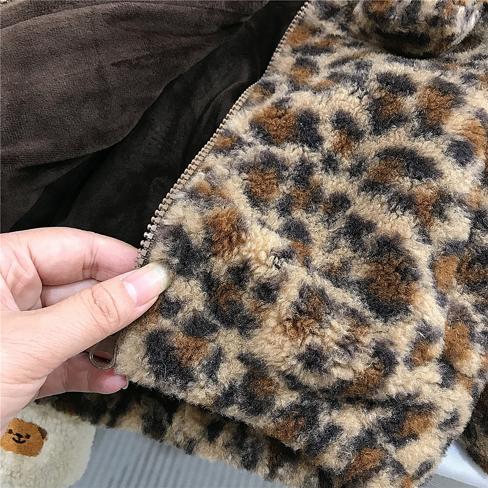 여자 레오파드 양모 면화 코트 소녀 동기 귀 마오 마오 코트 유행 아기 소녀 달콤한 쿨 탑스토어 가기