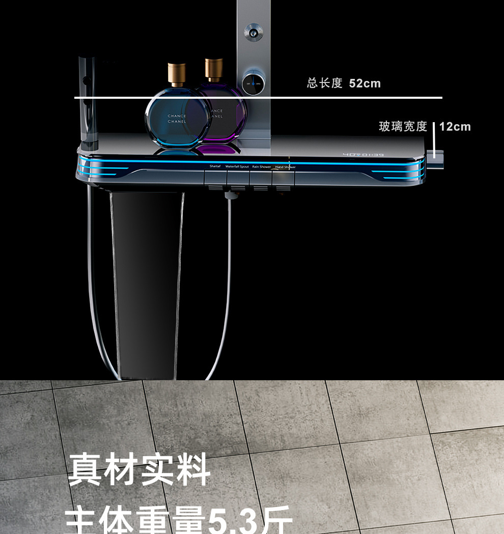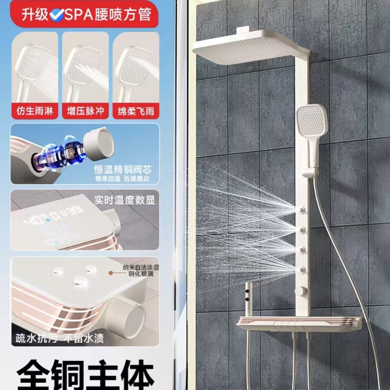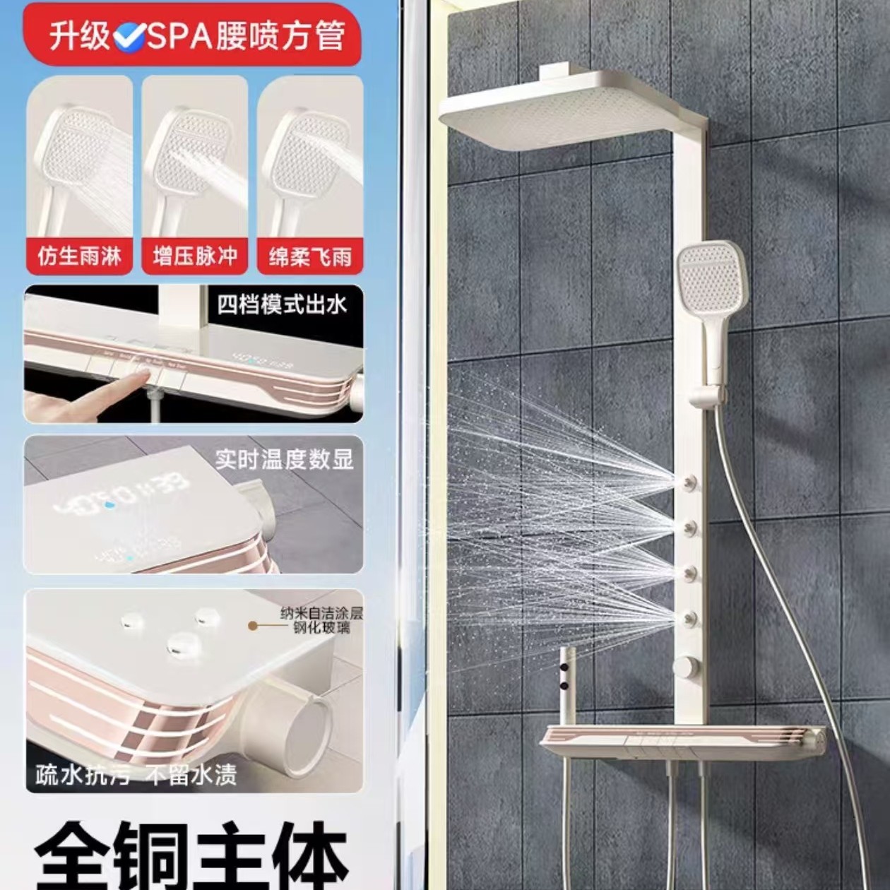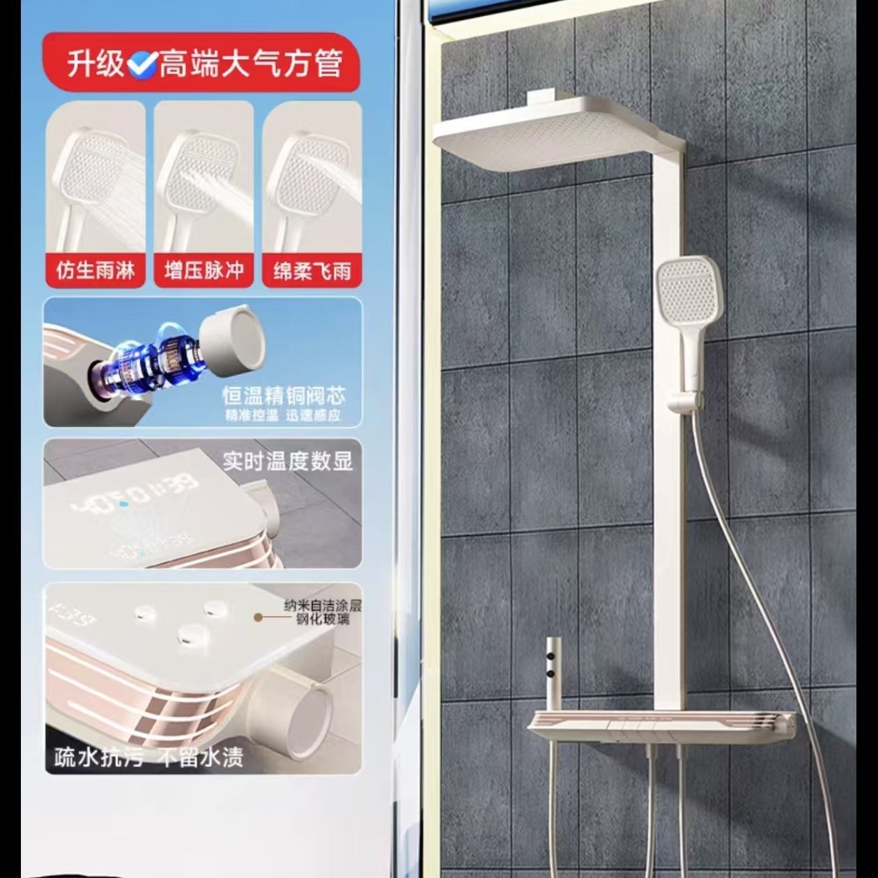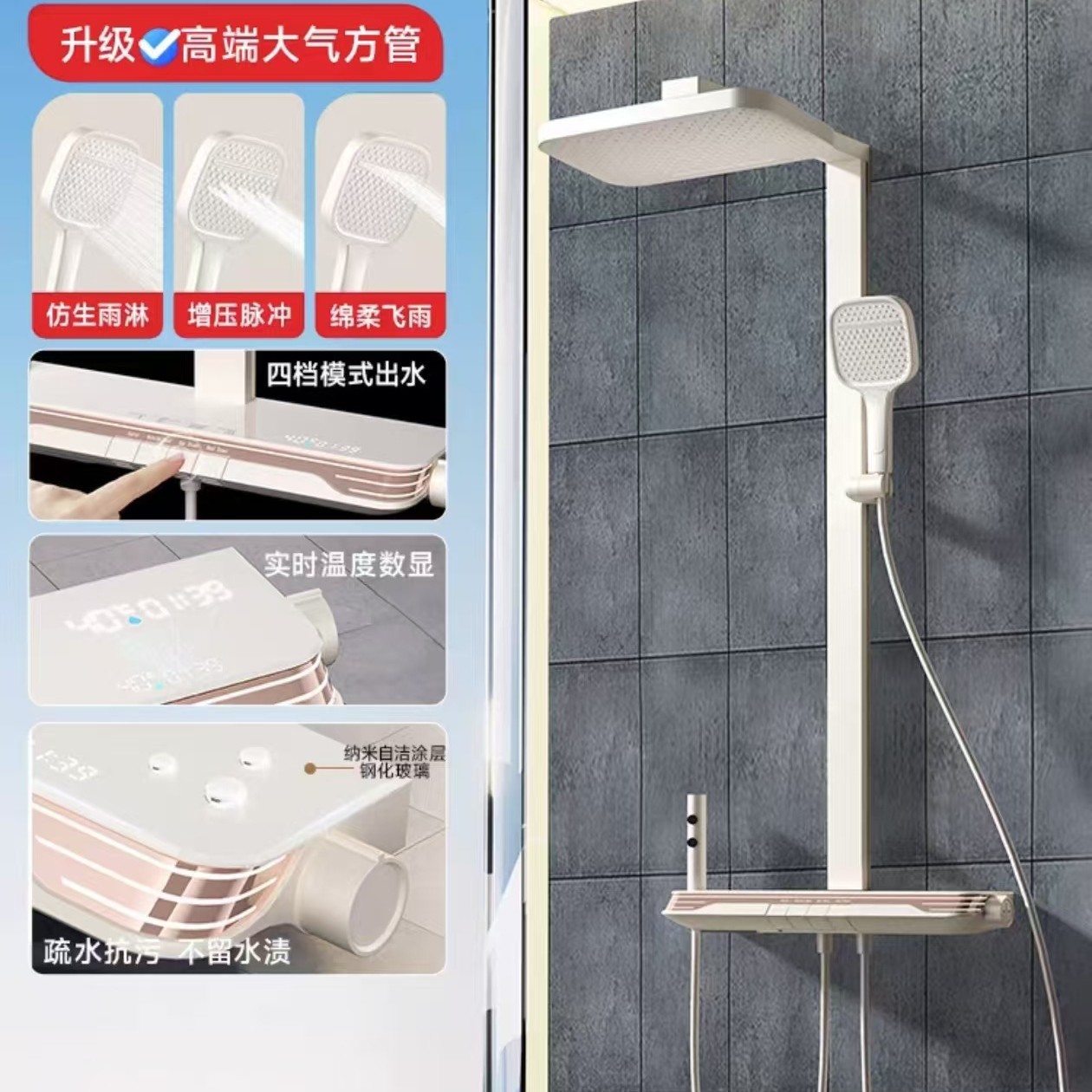 전동 온도조절 샤워기 세트 가정용 화장실 욕실 심플 디지털 디스플레이 무드등 스마트 가압 샤워 세트스토어 가기