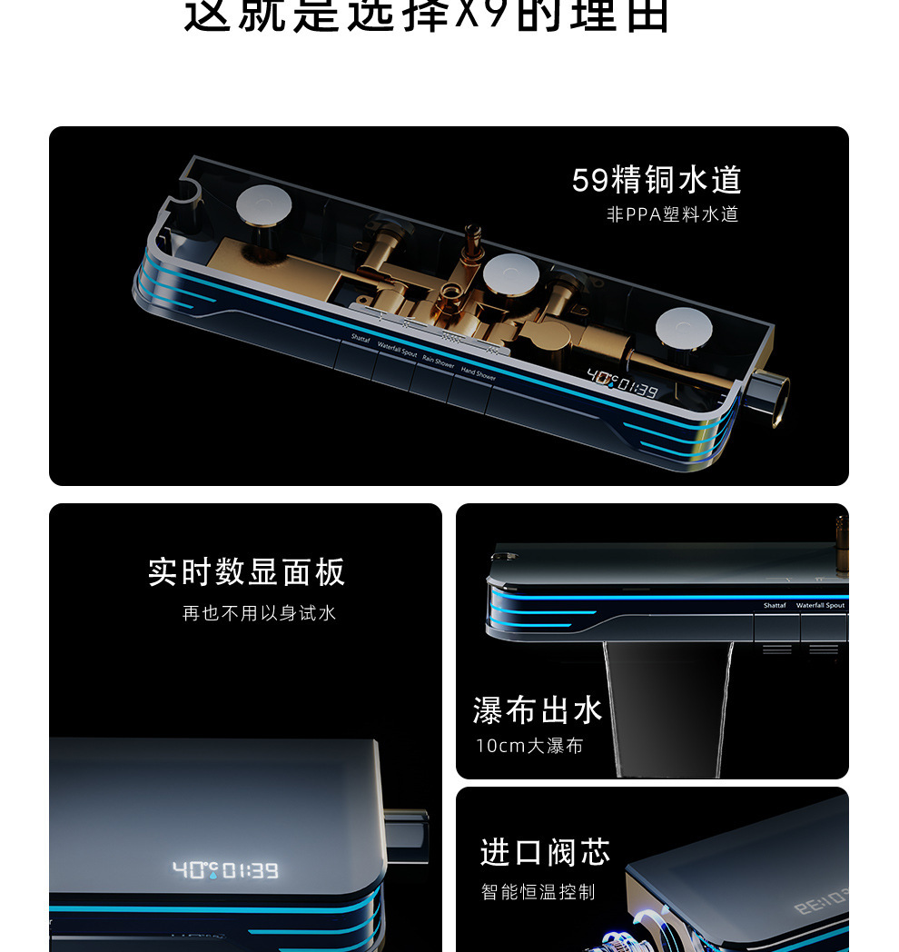 • X9 표준 버전 - 항온(밀크 화이트 로즈 골드) 사각 튜브