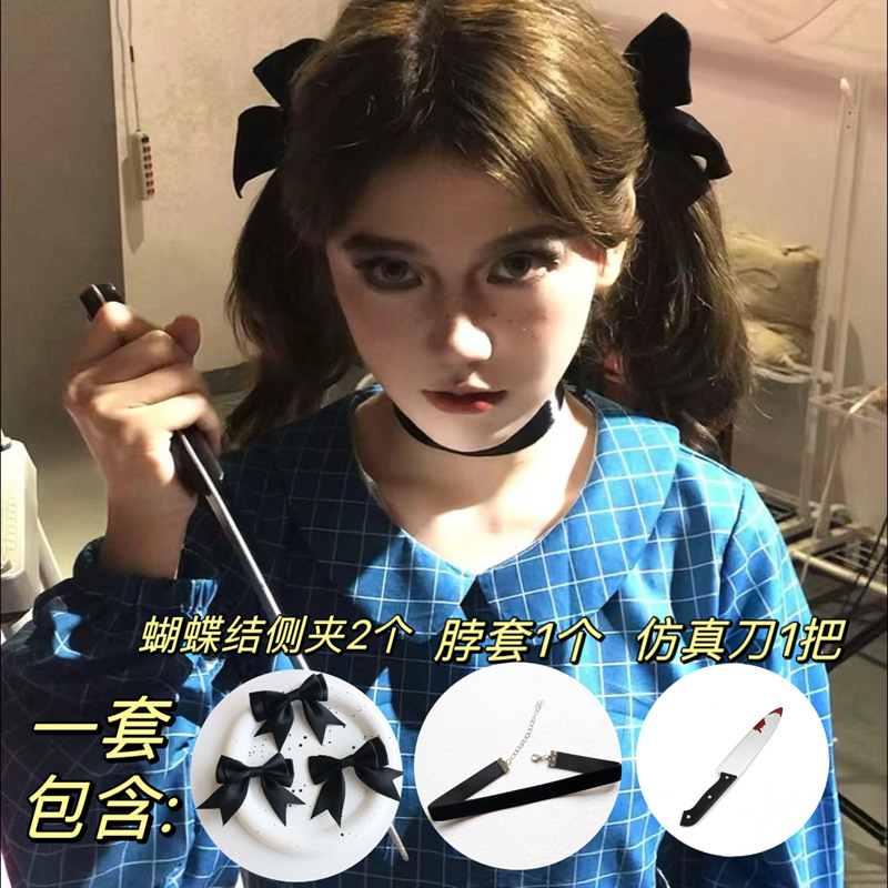 할로윈 코스 고아 불만 스타일 칼라 활 머리핀 사이드 클립 실크 스타킹 원피스