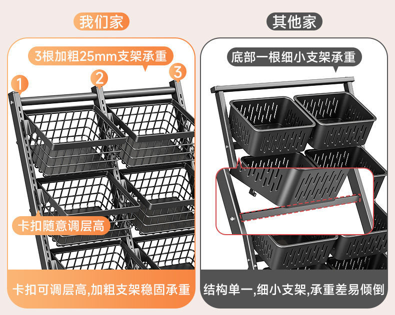 주방 다기능 스토리지 랙 바닥 다층 스토리지 랙 야채 바구니 야채 스낵 랙 거실 코너 스토리지 랙