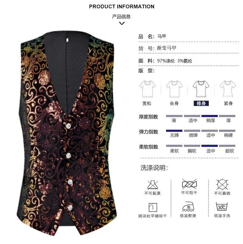 국경 간 남성 양복 조끼 영국 스타일의 프린트 양복 조끼 양복 조끼 공연 원피스 호스트 MC의 어깨 양복 조끼 공연스토어 가기