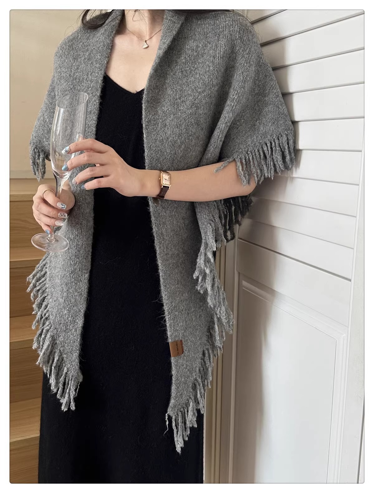 캐주얼 스카프 여성 방황하는 감각 캐시미어 술 니트 트라이앵글 올매치 따뜻한 목도리 다기능 스카프