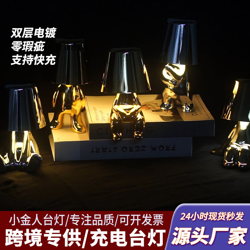 국경 간 재고 전기 도금 작은 황금 남자 테이블 램프 사상가 창조적 인 장식품 침실 침실 침실 장식 충전 야간 조명스토어 가기
