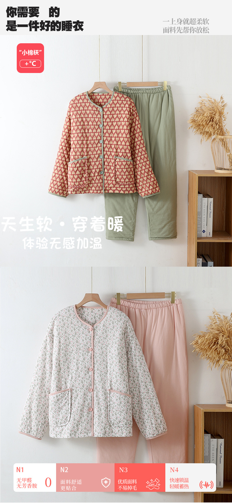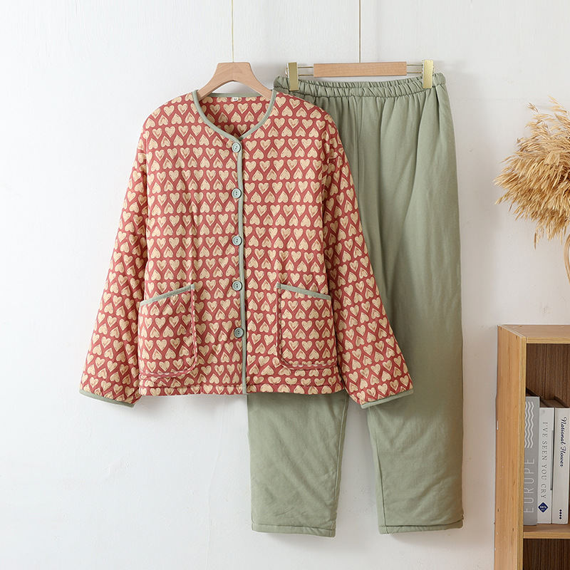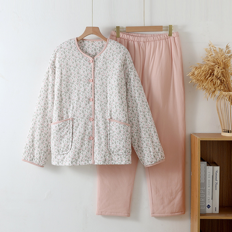 여성용 심플 캐주얼 면옷, 면잠옷, 따뜻하고 외출복으로도 착용 가능한 홈웨어, 겨울용 두꺼운 동북풍 꽃무늬 면자켓스토어 가기
