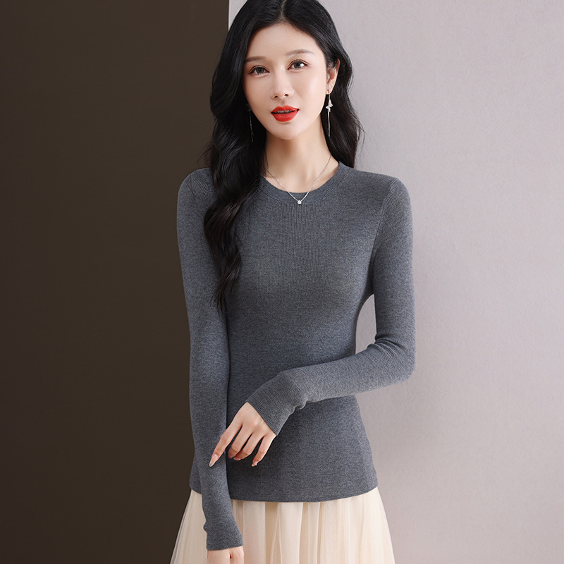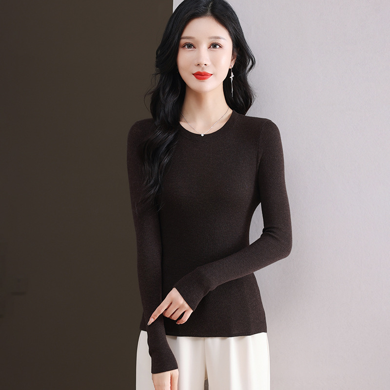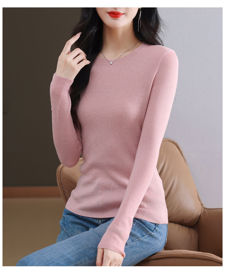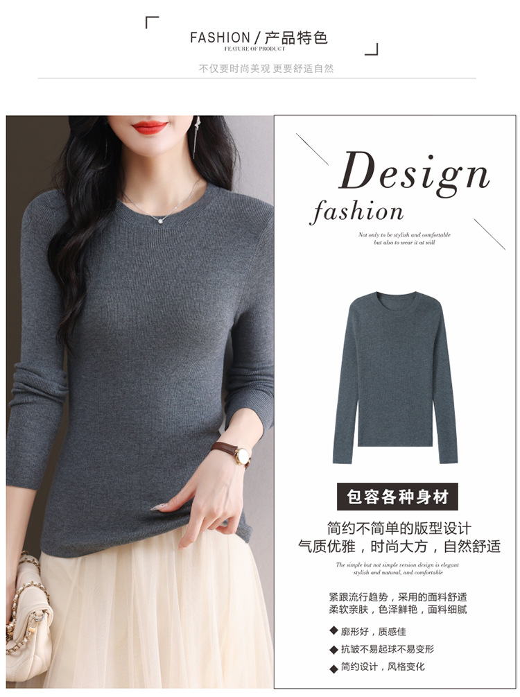 양모베이스 스웨터 새로운 인테리어 슬림 핏 솔리드 컬러 스트레치 긴 소매 스웨터 2024 패션 올 매치 탑